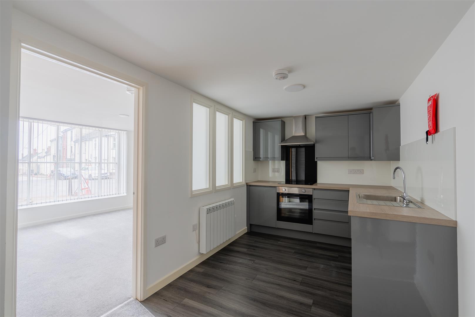 Flat 3, The Red House, St Lawrence Green is a ground floor apartment in a brand new development of studio and one bedroom flats in the centre of Crediton. The renovation has been carried out to a very high specification and offers contemporary living in the heart of this bustling town. Flat 3 is a one bedroom flat with shower room on the ground floor. As with all of the units at The Red House it benefits from a brand new kitchen, flooring and has high efficiency hot water and heating through a combi boiler. The flat is situated at the rear of the building away from the High Street.