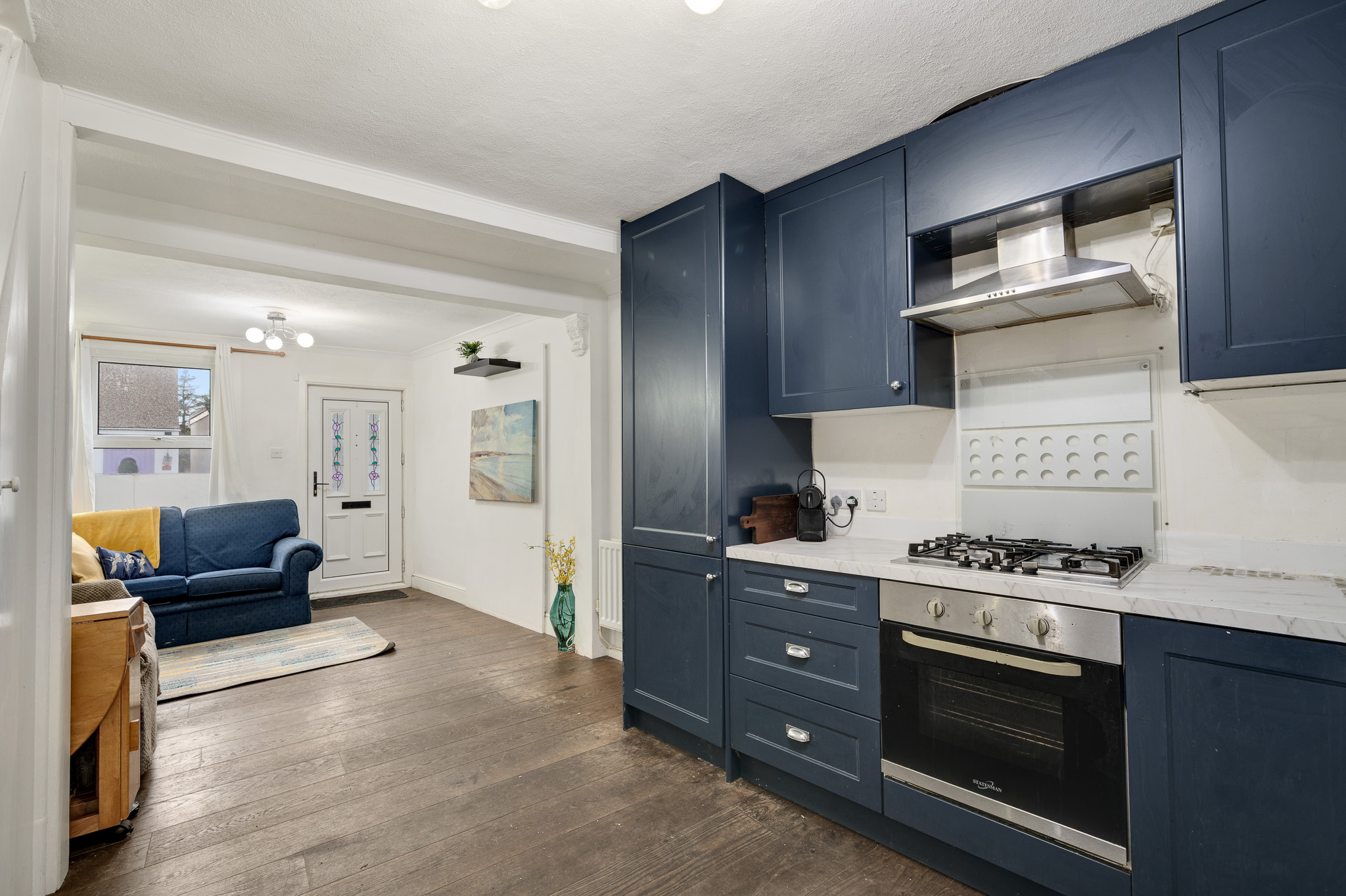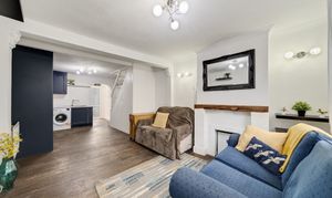 Accommodation comprises entrance leading into the open plan reception/kitchen with window to the front and ample space for relaxing, entertaining and dining. The kitchen area comprises a range of wall and base units with work surfaces incorporating inset sink unit, gas hob with overhead extractor, electric oven, and further space for appliances. A rear lobby has a door through to the family bathroom/WC and a door leading out to the private garden with rear access. To the first floor, there are two well proportioned double bedrooms each with inbuilt storage, with access through to a further versatile single bedroom/study/nursery from the rear bedroom.