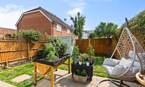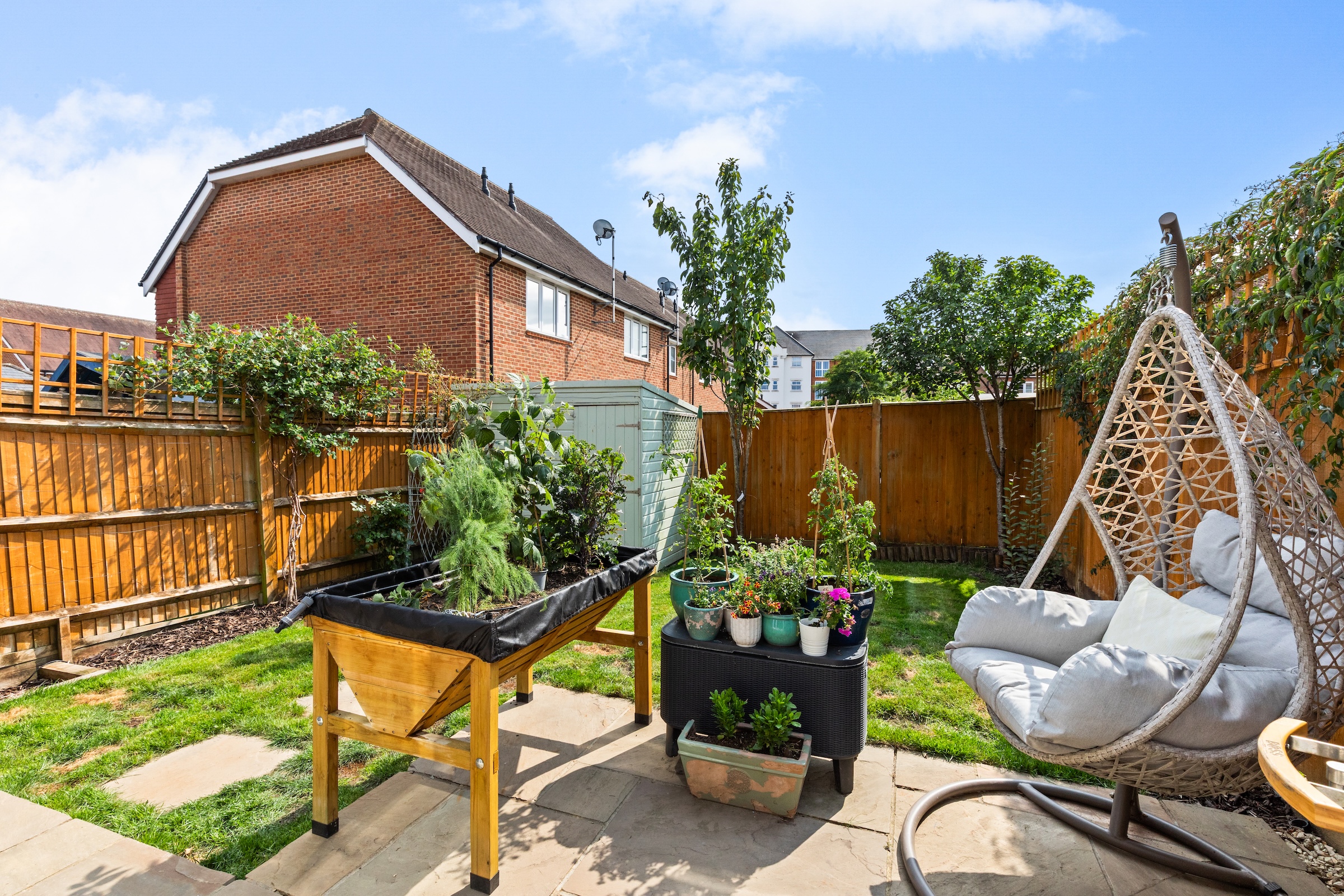 The 36’ x 23’ south facing garden has been landscaped by the current owner and is an ideal space for entertaining. The garden is predominantly lawned with stocked borders, substantial Sandstone paved patio, timber framed shed and side access.