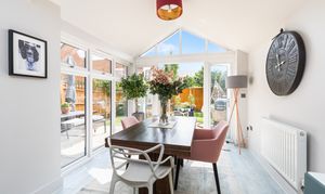 The accommodation comprises: entrance hallway, cloakroom, well proportioned sitting room which leads into a fantastic glazed dining room with double doors onto the south facing garden.