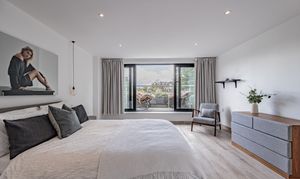 The top two floors, house four opulent bedrooms, each with its own ensuite. The principal suite is a retreat of grand proportions, featuring dual-aspect views, a built-in TV, fire, walk-through dressing area, and a spa-inspired bathroom with freestanding bath and walk-in shower, offering a five-star hotel experience at home.