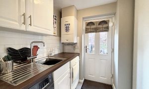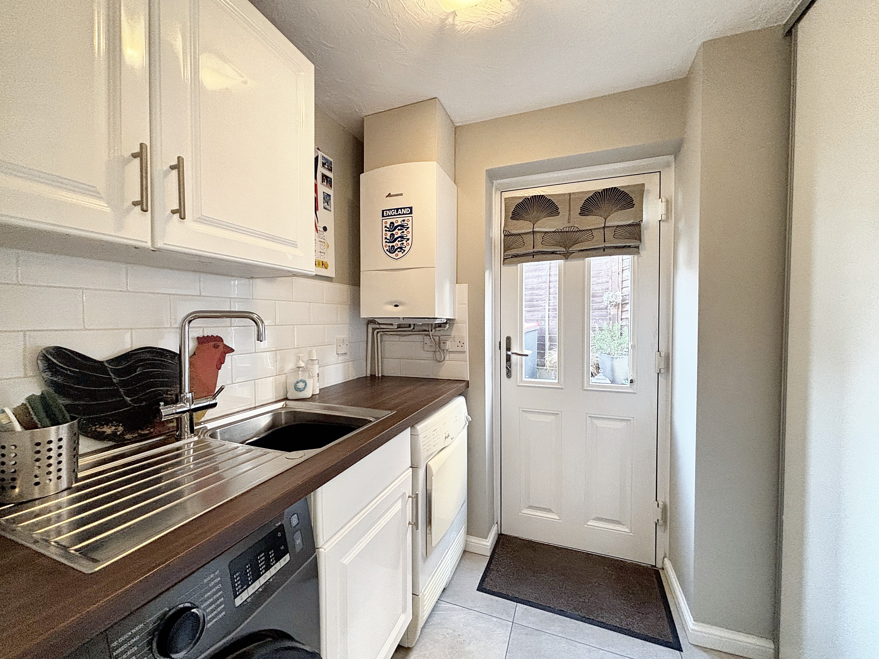 External door to the side elevation. Plumbing facilities for a washing machine and tumble dryer. Fitted cloak store with sliding doors.