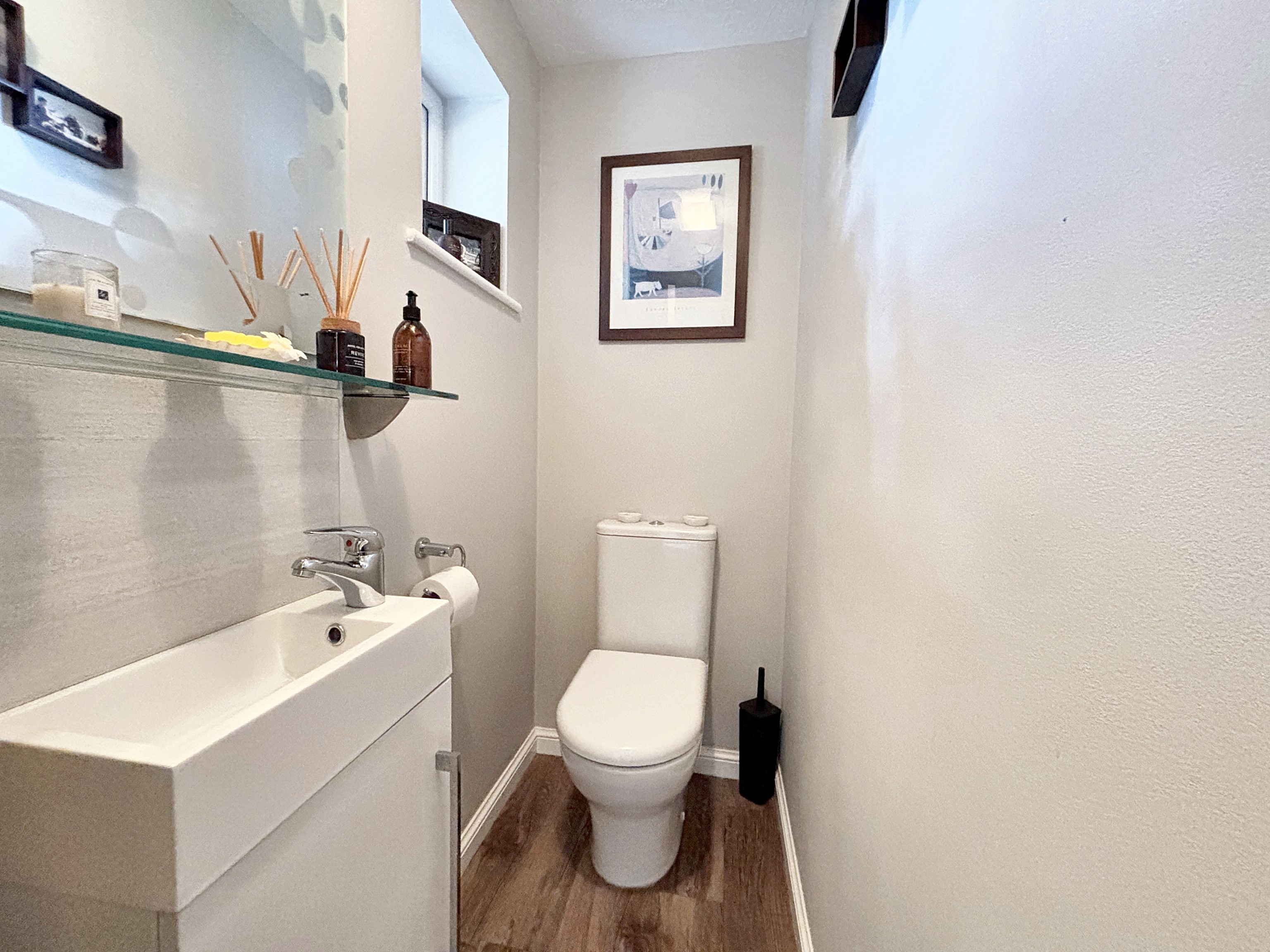 Window to the side elevation. Fitted with a low level W.C and a wash hand basin.