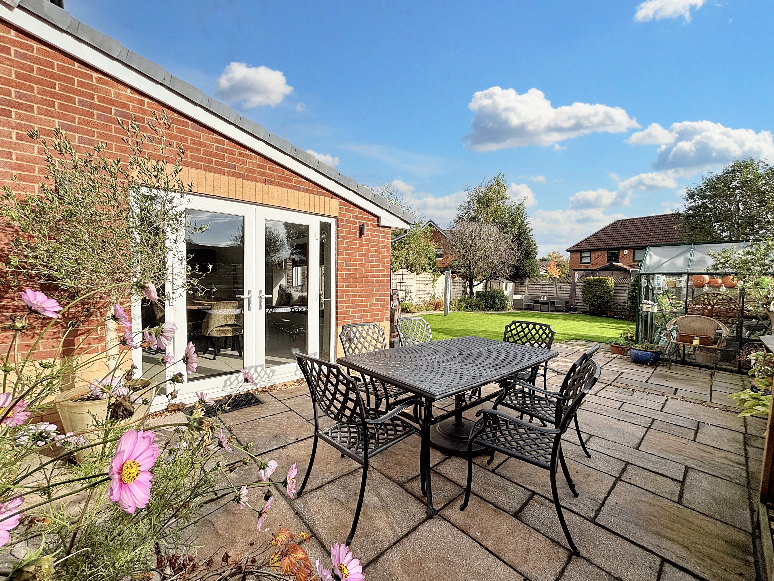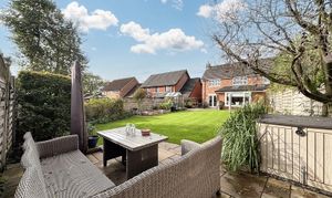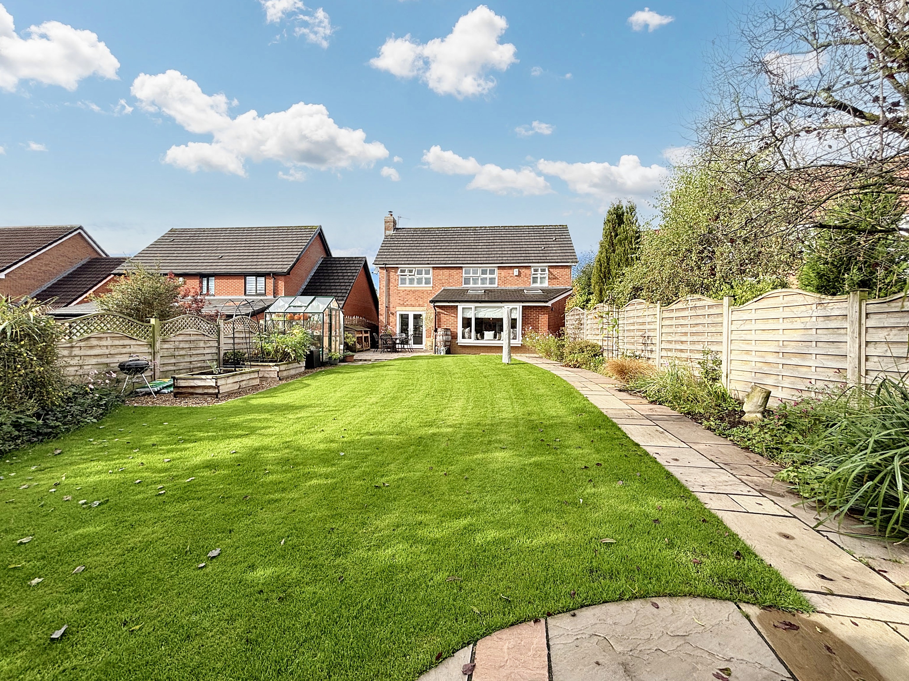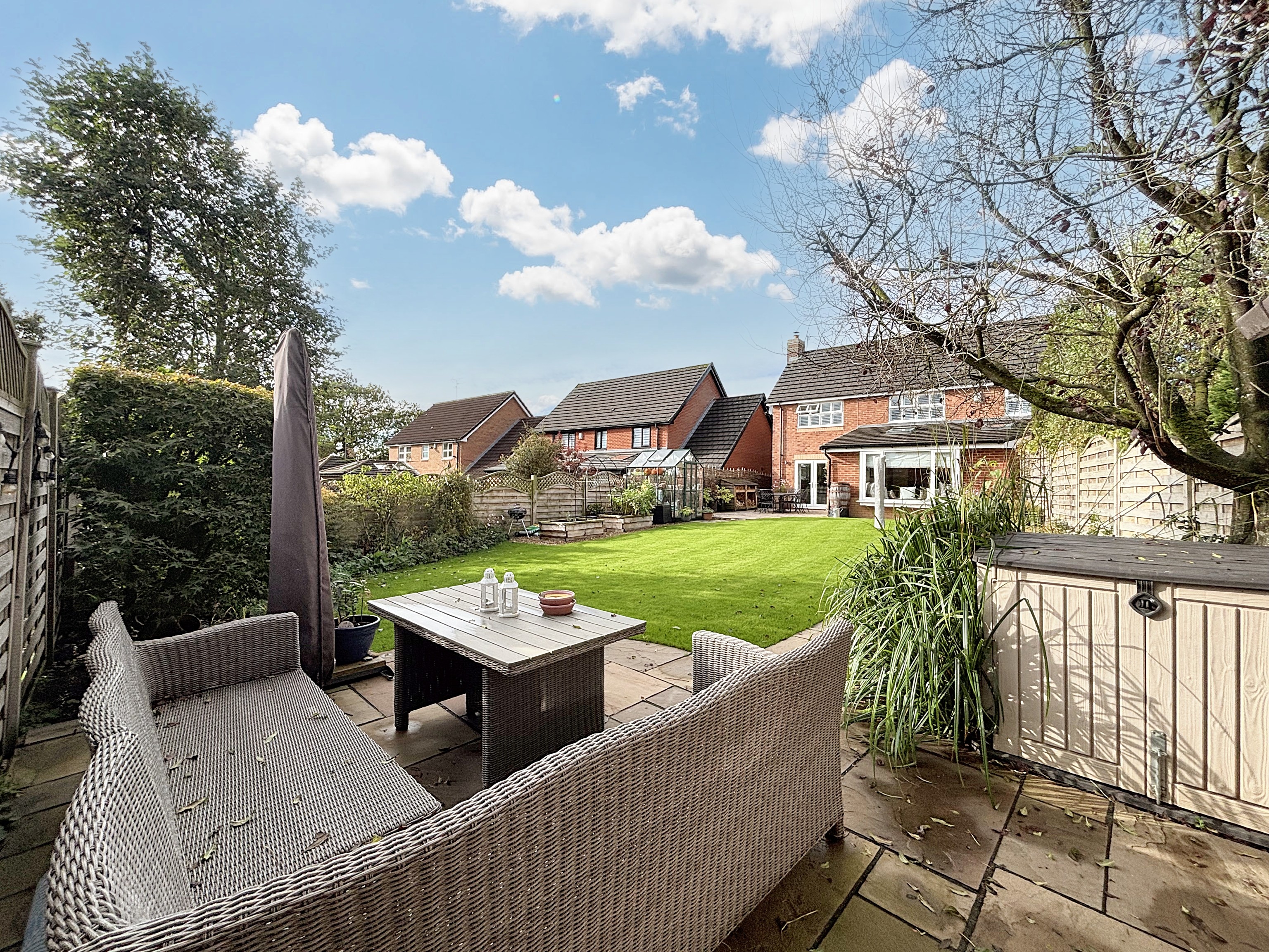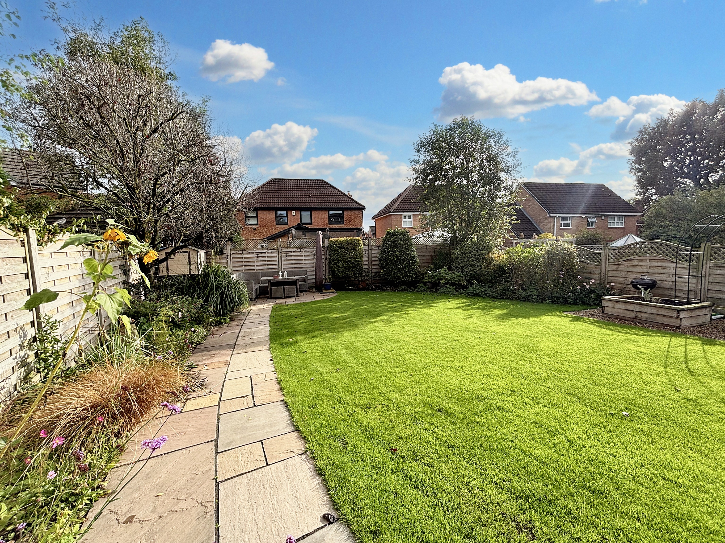 This wonderful family home occupies a generous plot on the popular Moorings development. The open frontage offers a large driveway providing a wealth of off road parking leading to a converted double detached garage and a neat lawn and well stocked planted borders. A side gate provides access to the private rear garden. The rear garden is beautifully landscaped with a large neat lawn mature planted borders and two paved patio areas ideal for summer entertaining.