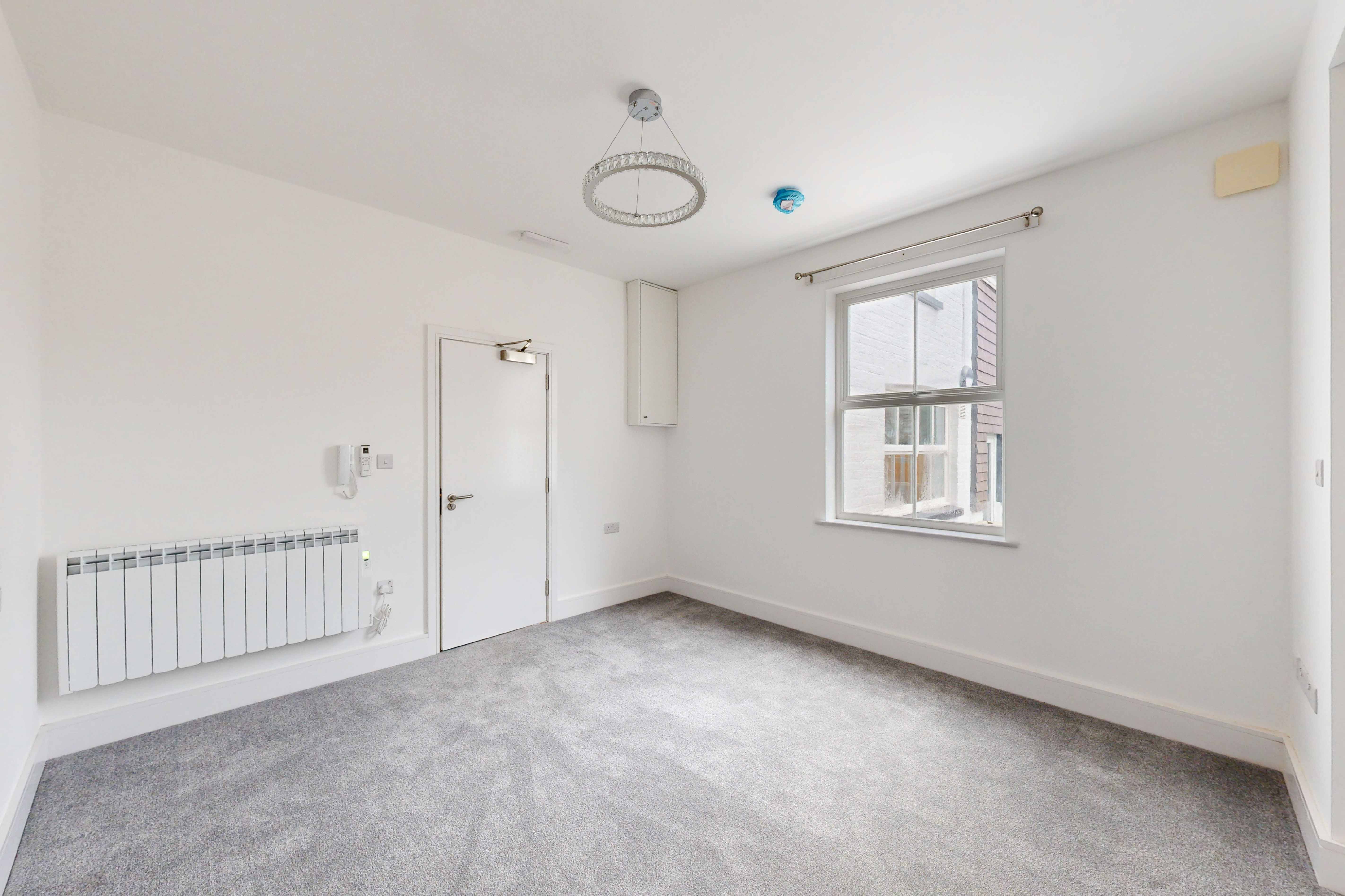 Freshly renovated. New carpets. Window facing out to the rear of the building. Electric heater. Opening up to: