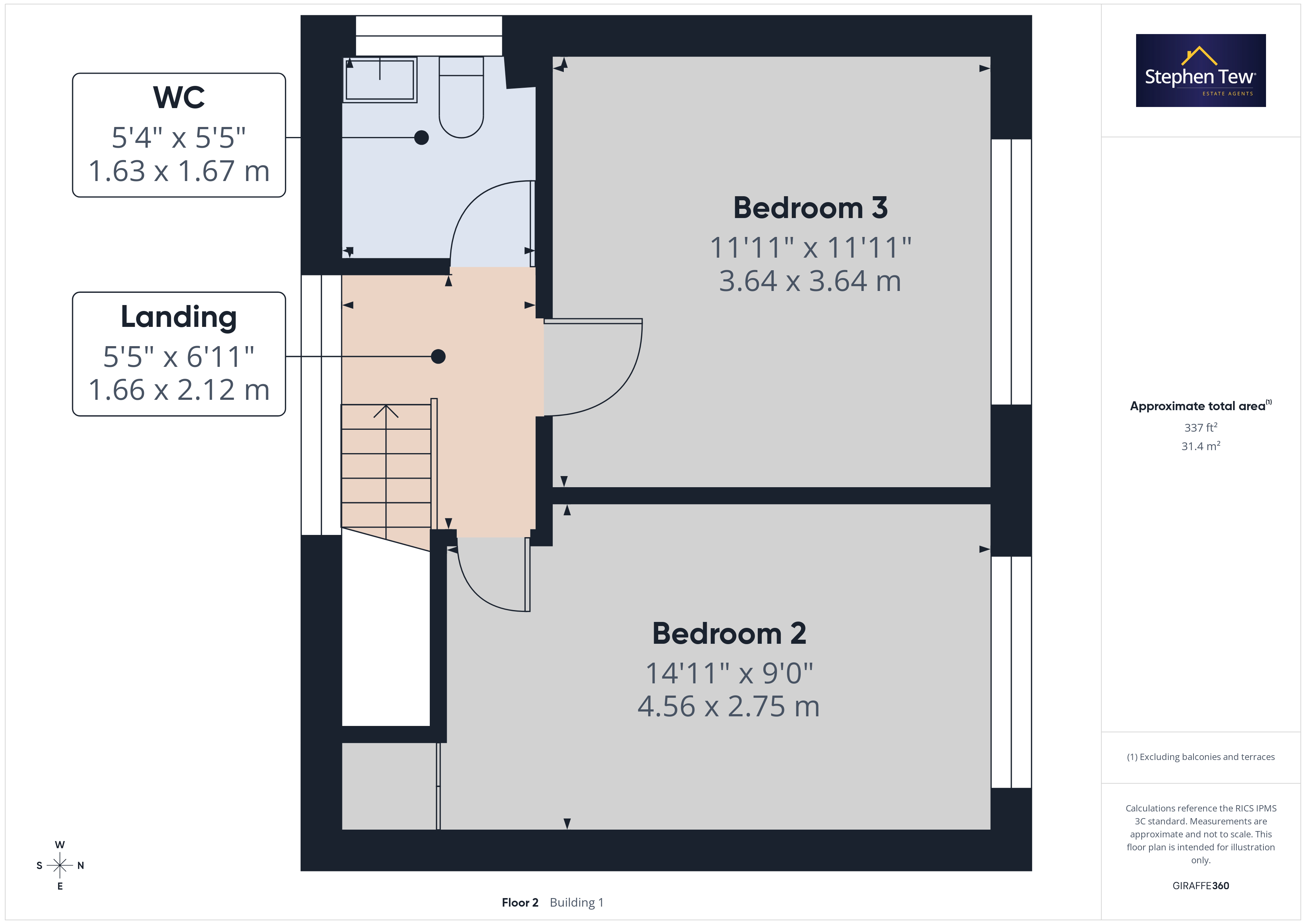 - Landing, 2 Bedrooms, WC