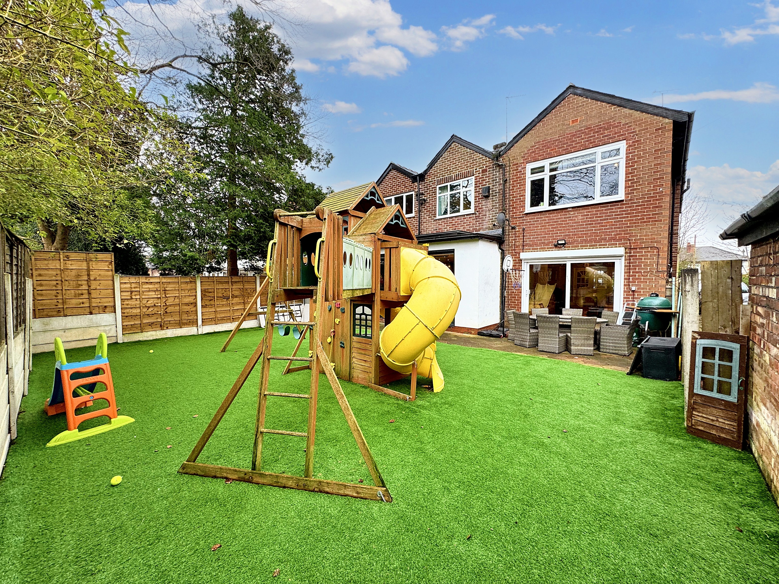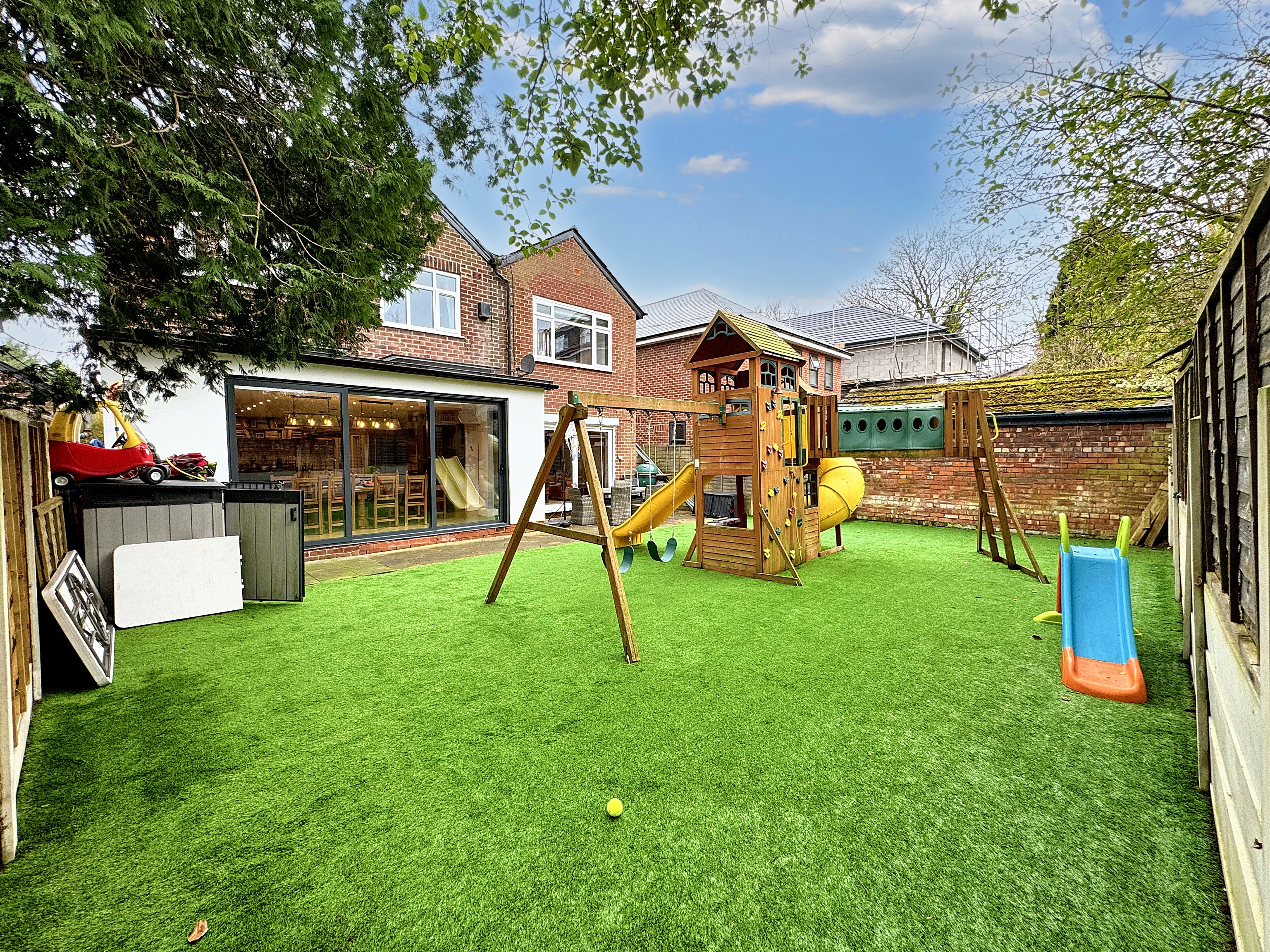 Externally, the rear garden is of a good size and has been designed for both relaxation and entertaining, featuring a patio area ideal for outdoor dining and social gatherings.
