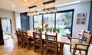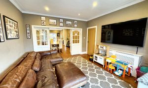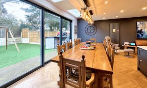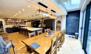 To the first floor, the property offers six generously proportioned bedrooms, making it ideal for larger families or those requiring additional guest or work from home space. Three of the bedrooms benefit from stylish en suite facilities, including an impressive principal suite, while a contemporary family bathroom serves the remaining bedrooms.