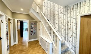 Set behind secure electric gates, the property is approached via a substantial driveway providing ample off road parking. From the moment you enter, the home conveys a sense of space and quality, with a layout that has been carefully designed to suit modern family living while retaining a refined, elegant feel throughout.