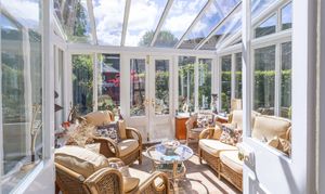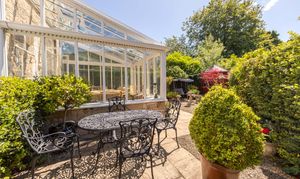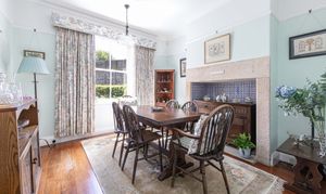 The dining room is perfect for formal entertaining, featuring an impressive, tiled inglenook and large windows that overlook the garden. For more relaxed gatherings, the snug and conservatory offer a place to unwind.