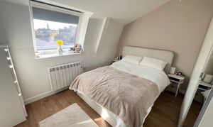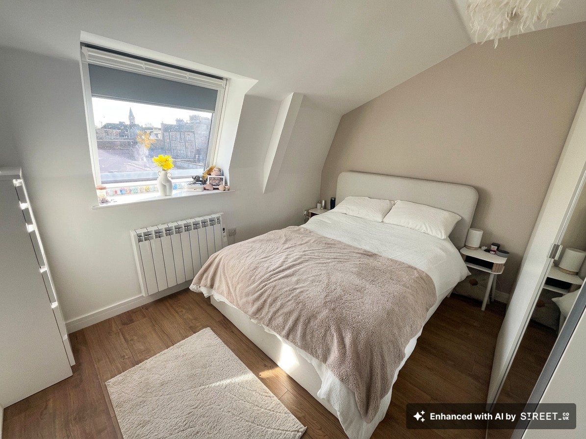 A well‑proportioned double bedroom with a side‑aspect window and electric panel heater. Offers comfortable sleeping space with room for wardrobes and additional furnishings.