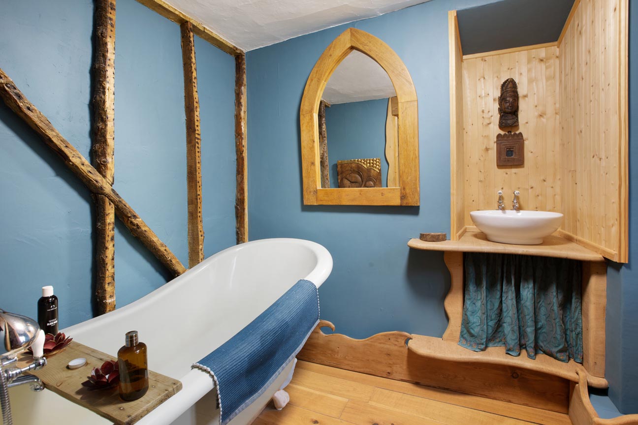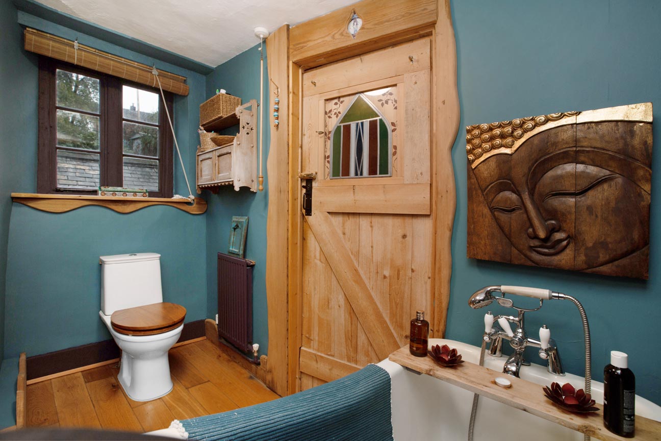 The first floor offers a generous double bedroom with built-in wardrobes, where the window outlook draws your eye across neighbouring cottage rooftops towards the moors beyond. Also on this level is the family bathroom, complete with a Georgian-style slipper bath and beautifully crafted wave-effect wood detailing to the skirting boards and sink area.