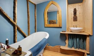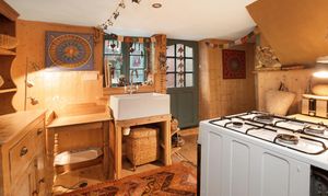 The kitchen has been thoughtfully designed with simplicity and sympathy for the home’s heritage, featuring a classic Belfast sink, wood-panelled walls and wooden flooring. The floor has been damp-proofed and insulated, ensuring the cottage remains warm and comfortable year-round.