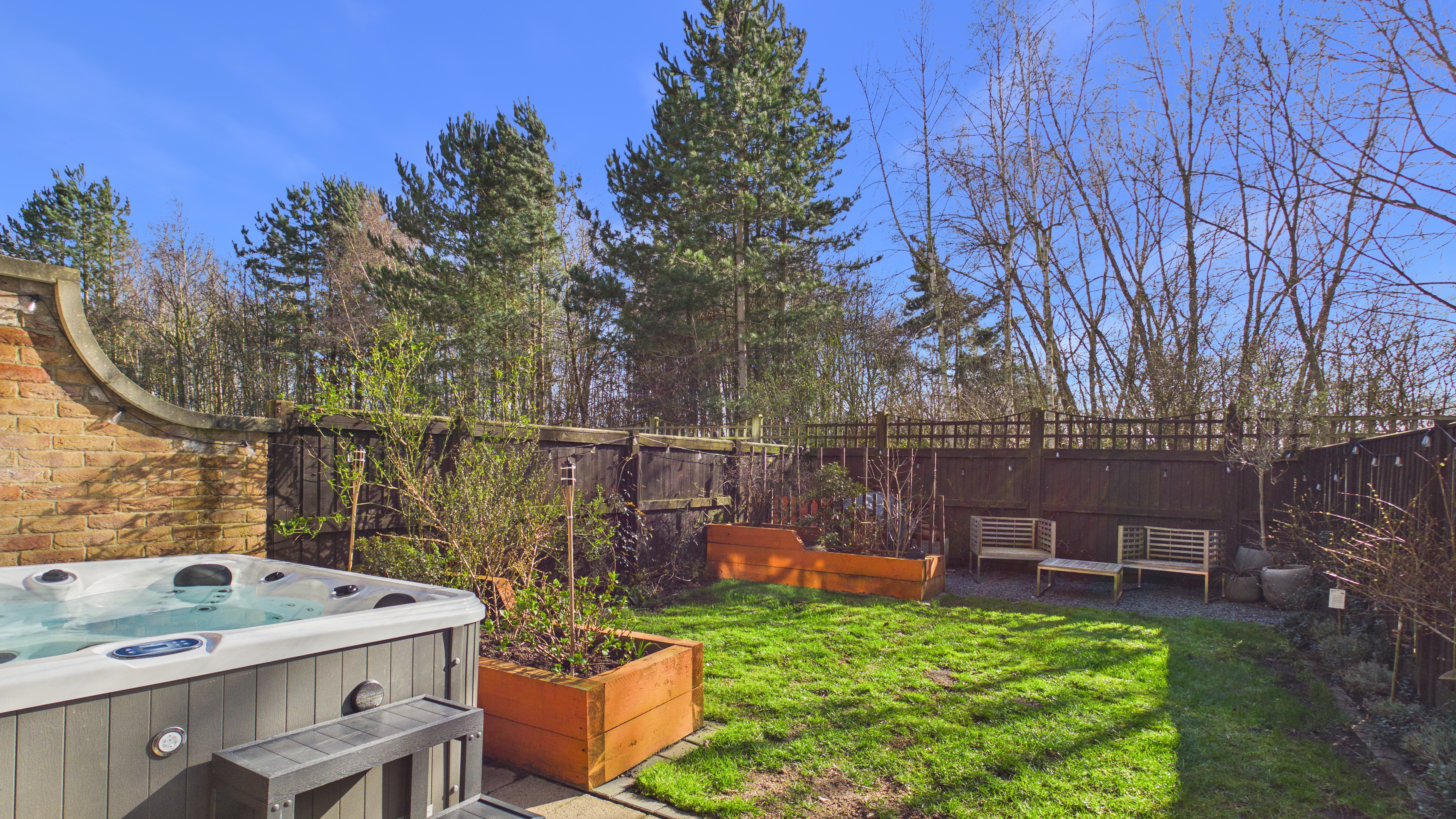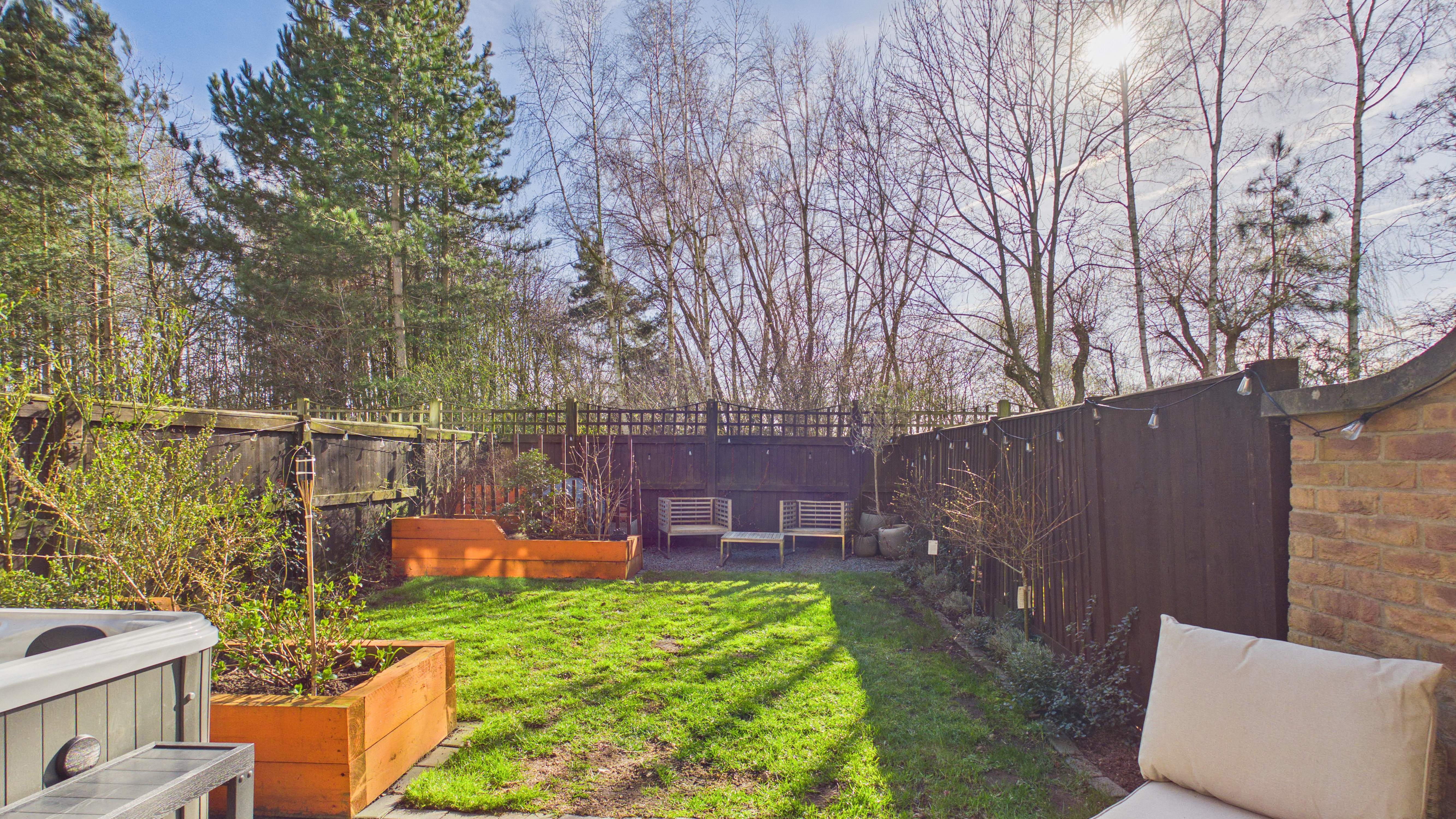 Externally, the rear garden is enclosed, private and not overlooked, with the added bonus of woodland views rather than water—offering a calmer, greener outlook.
