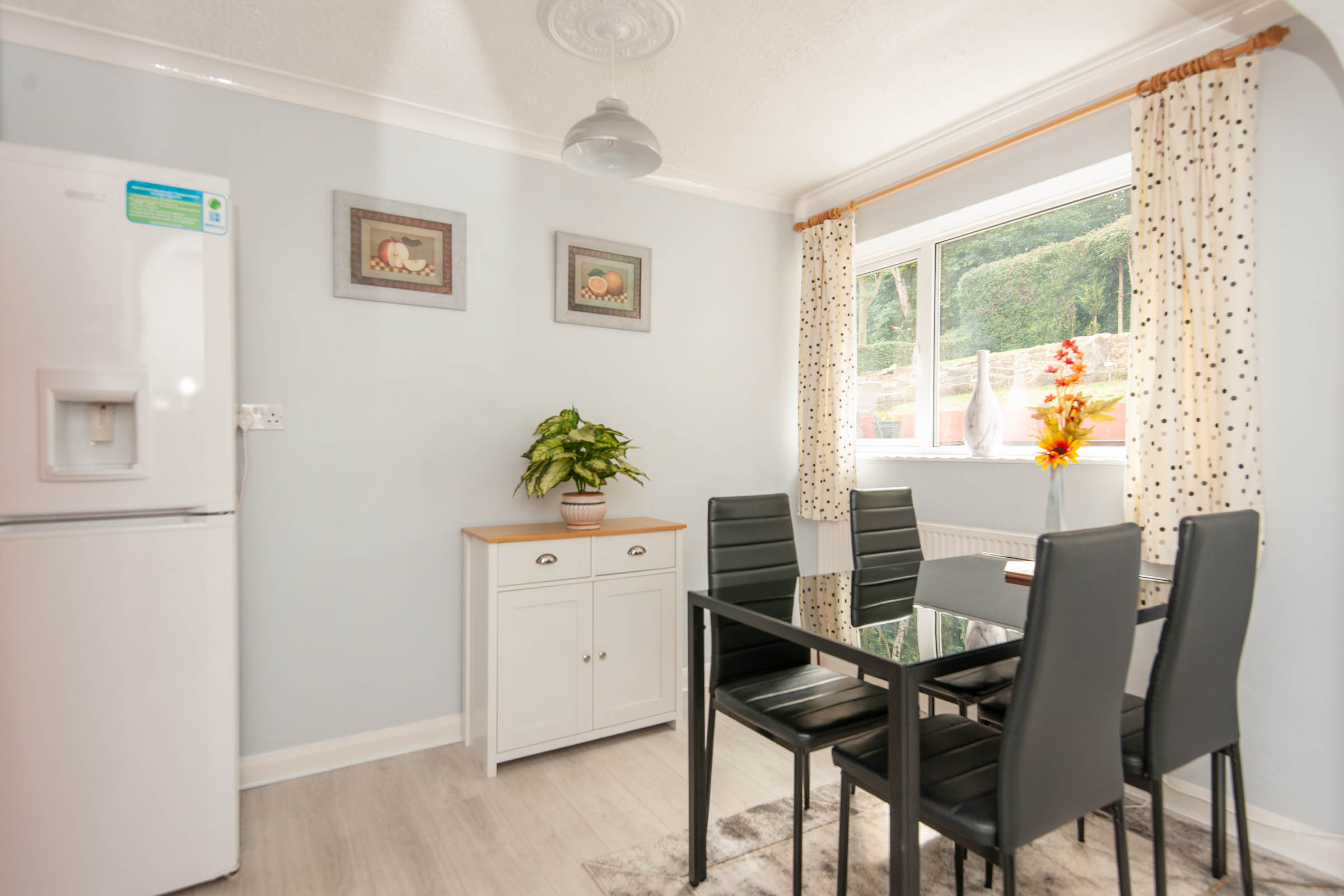 This superbly styled three-bedroom detached house boasts a spacious and modern open plan fitted kitchen/diner, perfect for gathering and entertaining friends and family. The kitchen features integrated cooking appliances, providing both convenience and style. The light-filled open plan bay window lounge with patio doors leading to the garden creates a bright and airy living space, ideal for relaxing and enjoying the stunning views.
