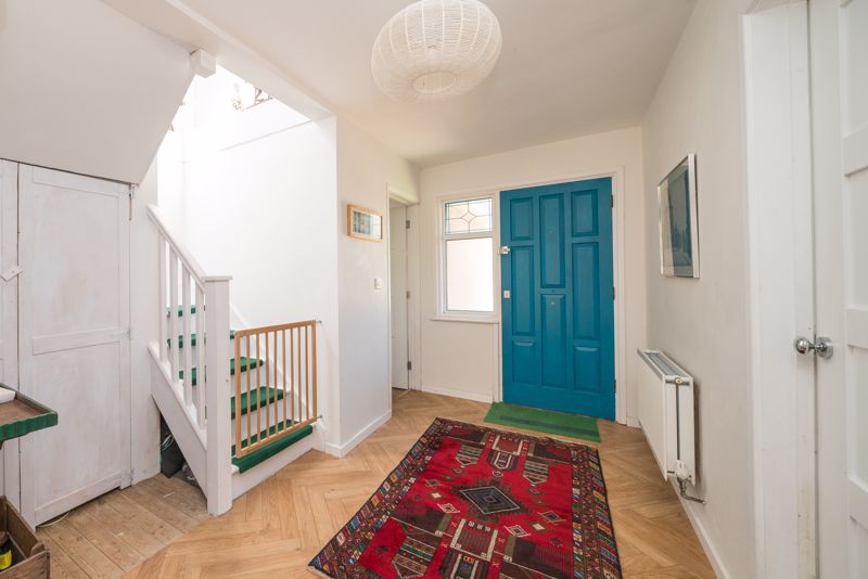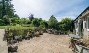 Externally the large south facing rear garden features patio areas, extensive lawn area and mature shrubs and trees..