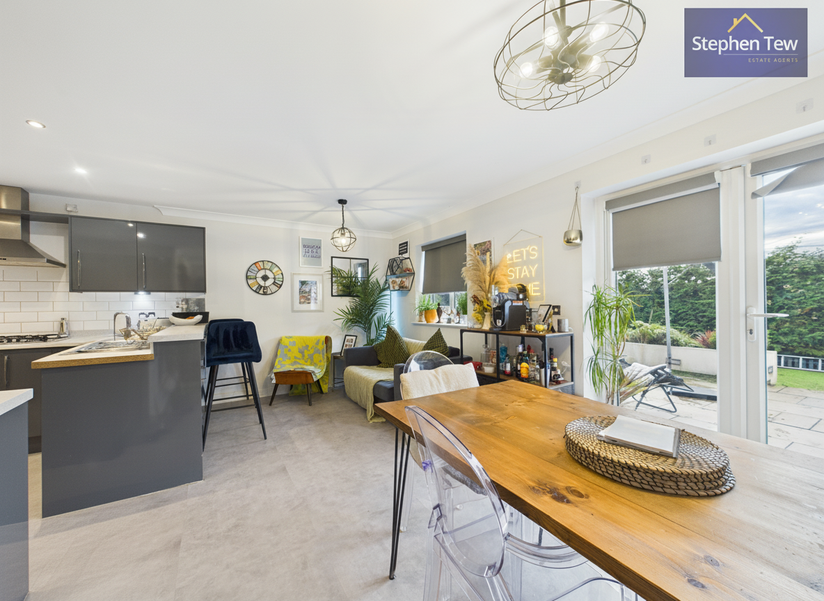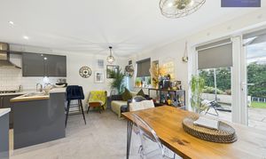 The heart of this home lies in its modern open-plan kitchen-diner, boasting integrated appliances and sleek finishes, making it the perfect space for entertaining guests or enjoying family meals together.