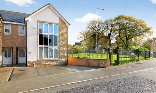 Large laid to lawn area, fenced boundaries, raised paved area for sitting, patio area to the side which can be accessed via the kitchen / dining space, access into the garage via side door, mature bushes and shrubs and side gate access.