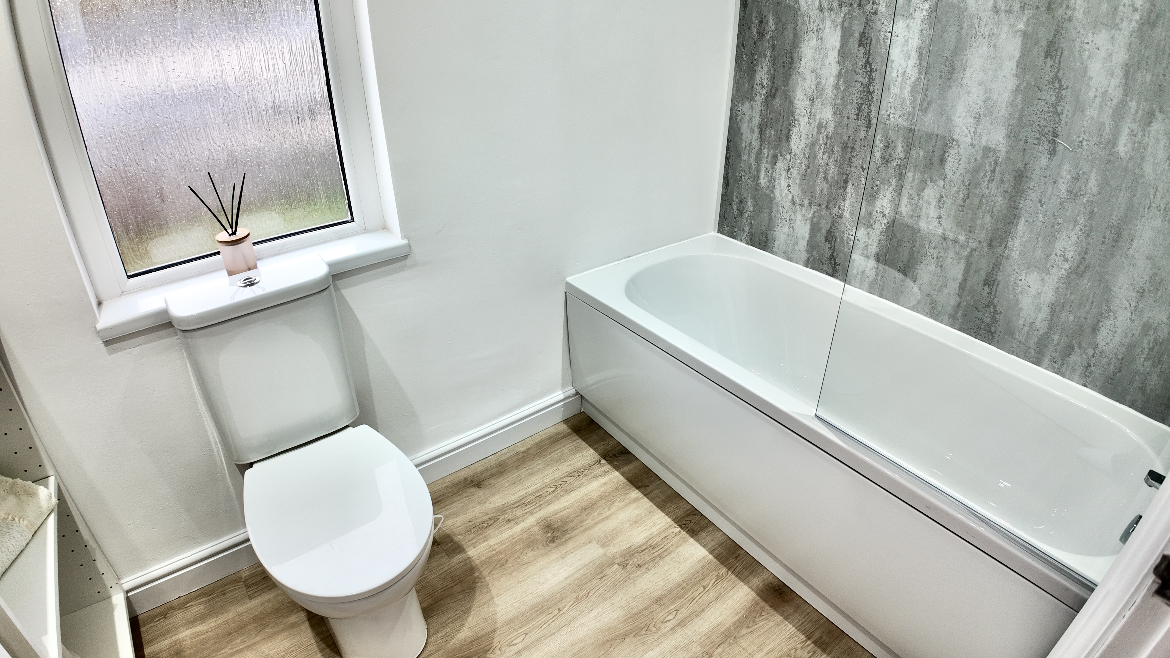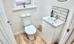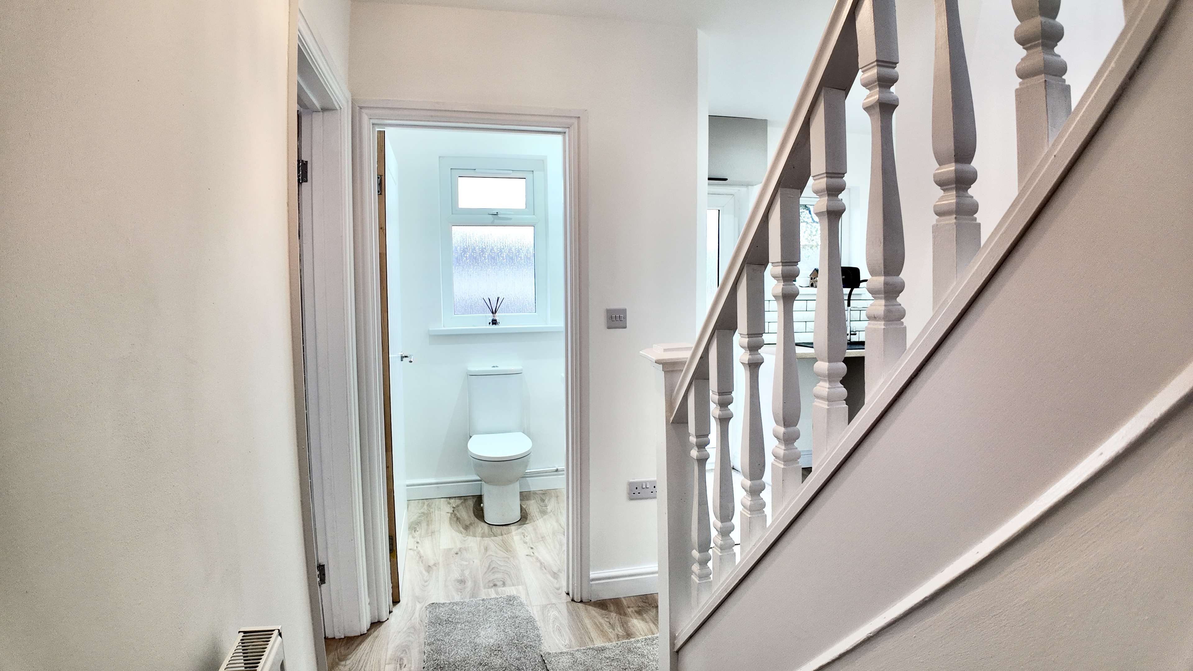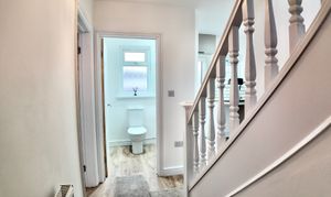 The newly fitted kitchen/diner boasting new appliances and ample storage space. Access to the rear garden makes al fresco dining a breeze, with a patio seating area perfect for enjoying your morning coffee or hosting summer barbeques. The generous lawned area provides plenty of space for outdoor activities, making it an ideal spot for both relaxation and entertainment.