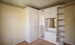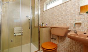 On the first floor, the landing has two cupboards, one of which houses the hot water tank, and loft hatch access. There are four bedrooms, three of which having integrated storage cupboards, and a family bathroom with a walk-in shower cubicle, basin and w/c.