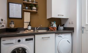 Downstairs feels just as spacious, with a full width open plan kitchen/dining/family room stretching 25ft across the back of the home. This vibrant family living area includes patio doors leading onto the garden and a utility room with an exterior entrance to keep muddy shoes and wet coats out of the way. You’ll also enjoy a separate lounge, with a traditional bay window for some quiet time to yourself.