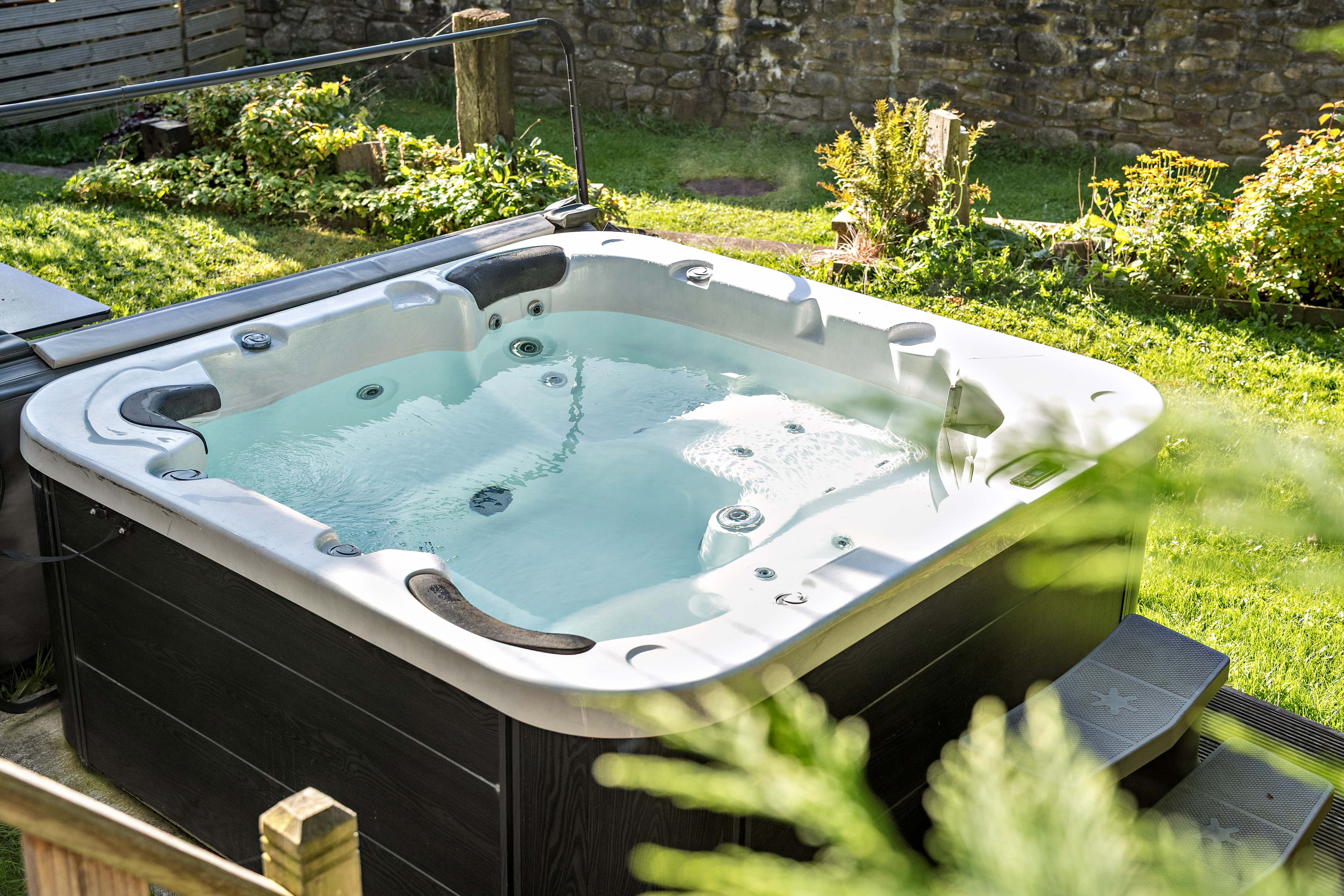 To the rear, the home opens onto a beautifully maintained private lawned garden, offering a peaceful escape with ample space for outdoor dining and leisure. A highlight of this stunning outdoor space is the jacuzzi, providing a touch of indulgence and the perfect spot to unwind all year round.