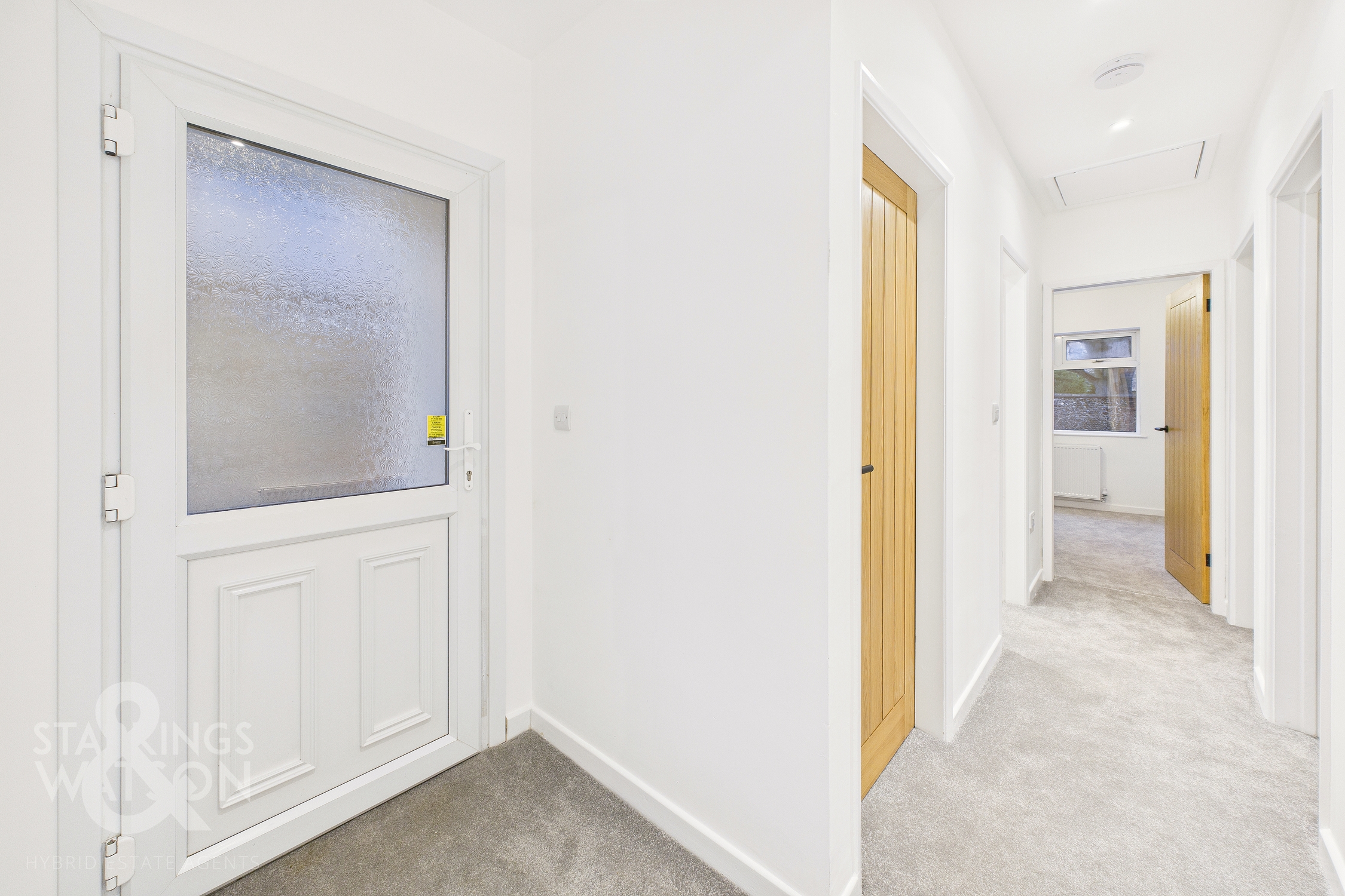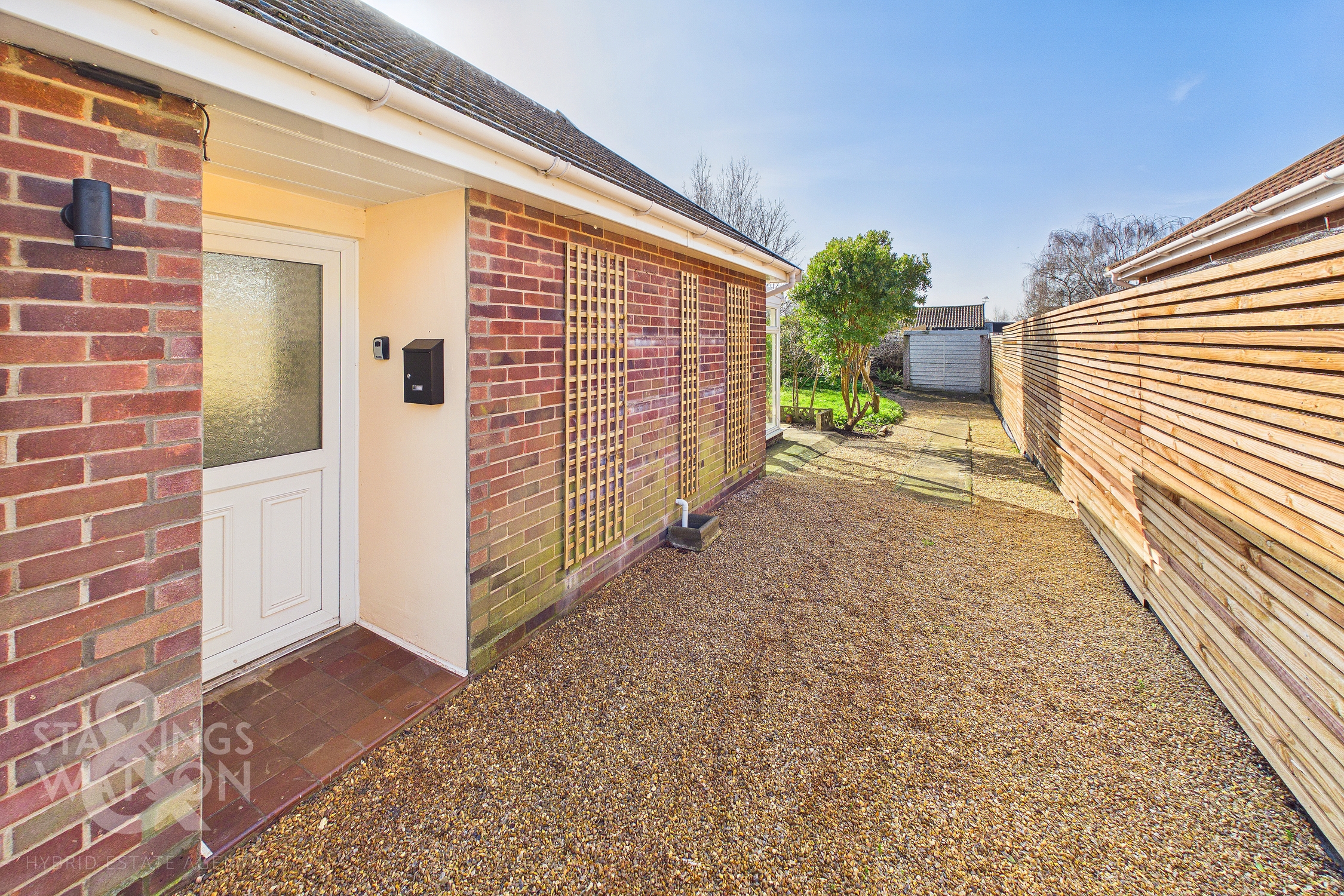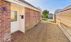 Approached via the ‘no through road’ within the heart of Ditchingham there is a large shingled driveway to the front and side of the bungalow providing off road parking for numerous vehicles. The driveway leads to the rear garden beyond and the single garage. There is gated side access on the other side of the bungalow with the main entrance door found to the side.