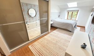 Upstairs, the bedrooms are a haven of comfort and style, some adorned with fitted wardrobes and Velux windows providing natural light and a touch of sophistication.