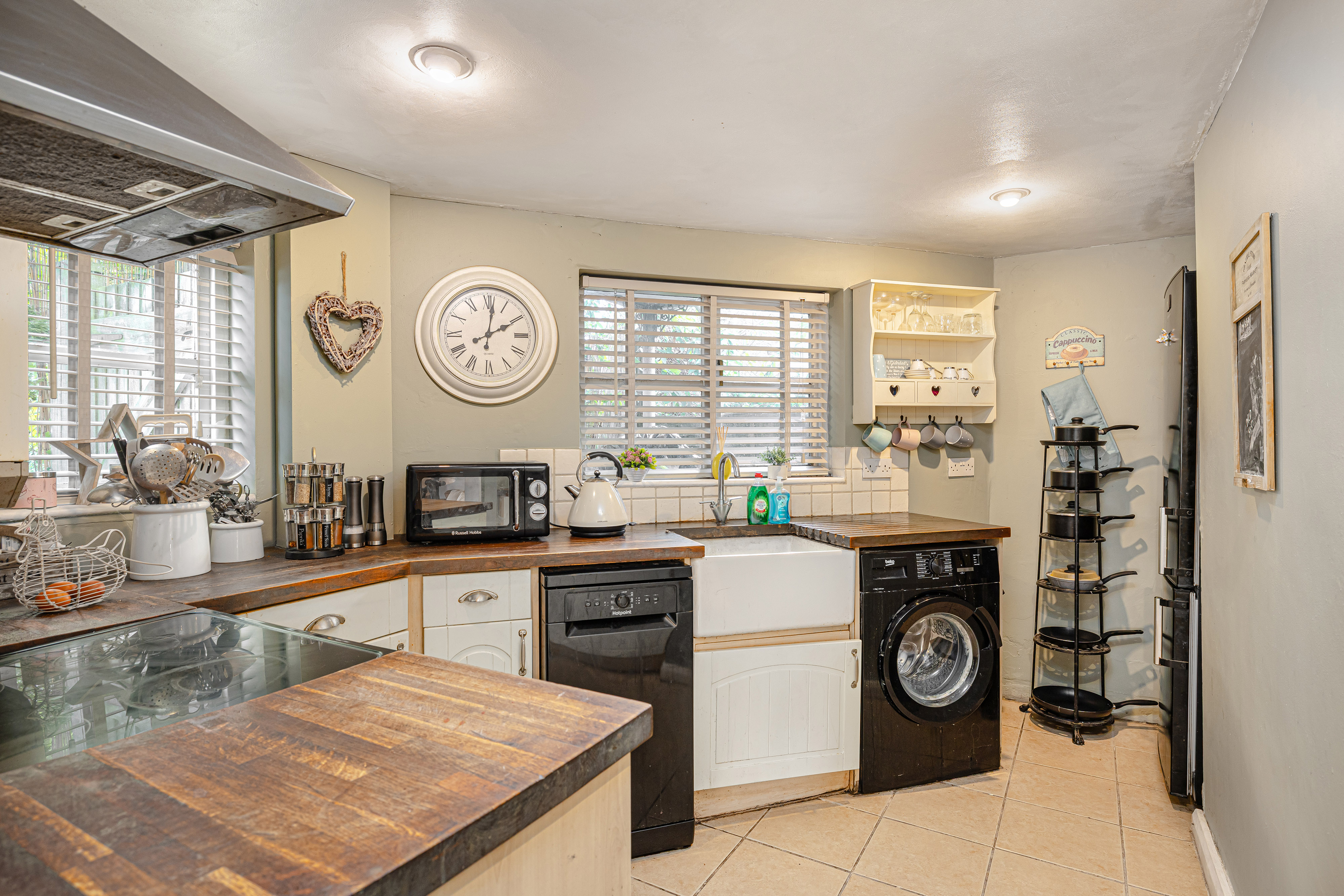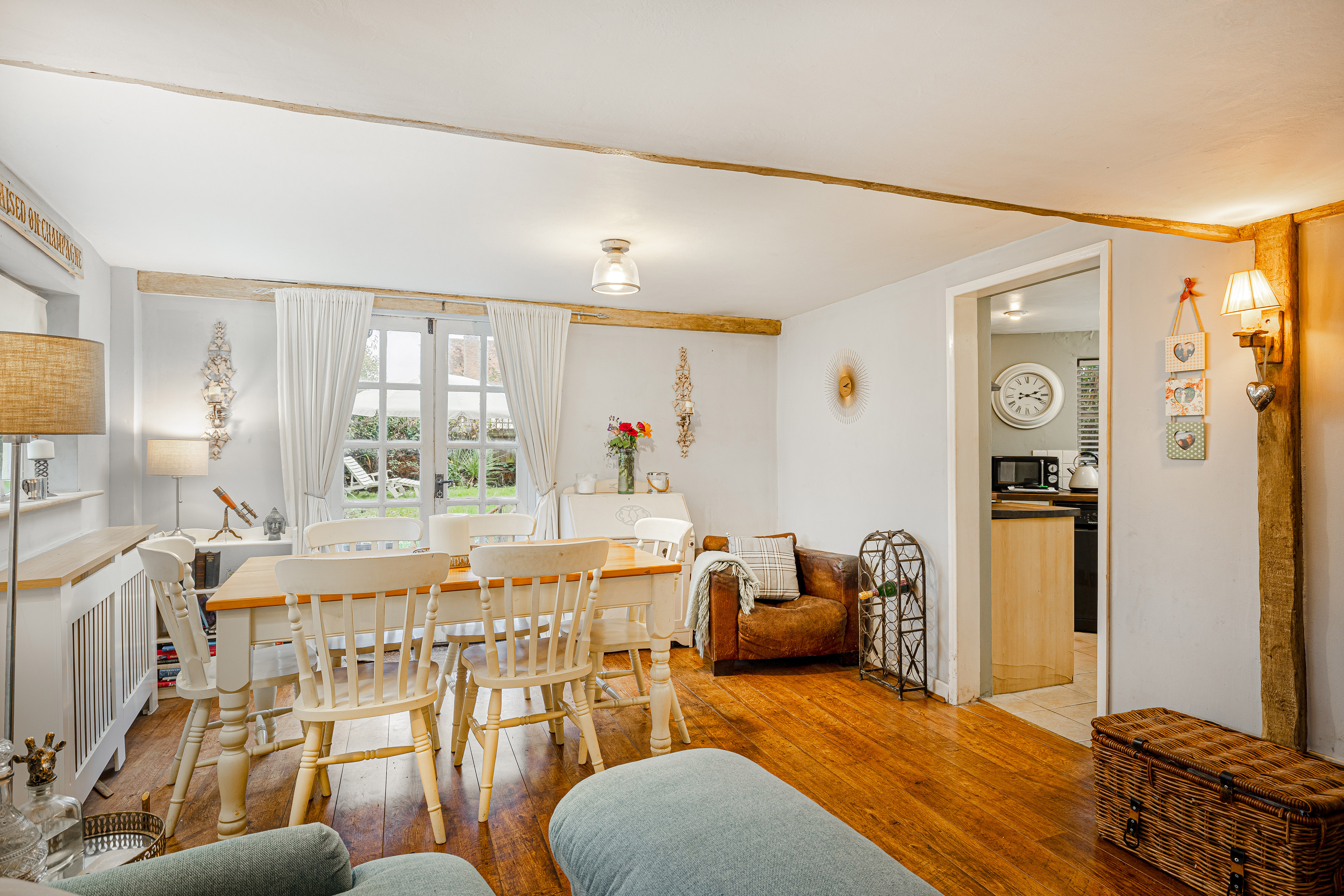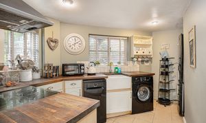 The heart of the house is the spacious yet cosy lounge, centred around an attractive open fireplace—perfect for unwinding in the evenings. The dining room opens into an additional family area, providing a flexible layout for everyday living or entertaining. The kitchen comes well equipped with ample storage and worktop space, with potential to extend (STPP) for those seeking even more room.