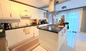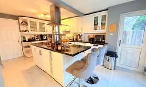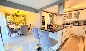 The true heart of the home is the impressive open-plan, extended kitchen/diner. Beautifully designed, this space features an extensive range of fitted units, a central island bar and ample room for dining, making it perfectly suited to both everyday family life and entertaining. The dining area comfortably accommodates casual meals as well as more formal gatherings.