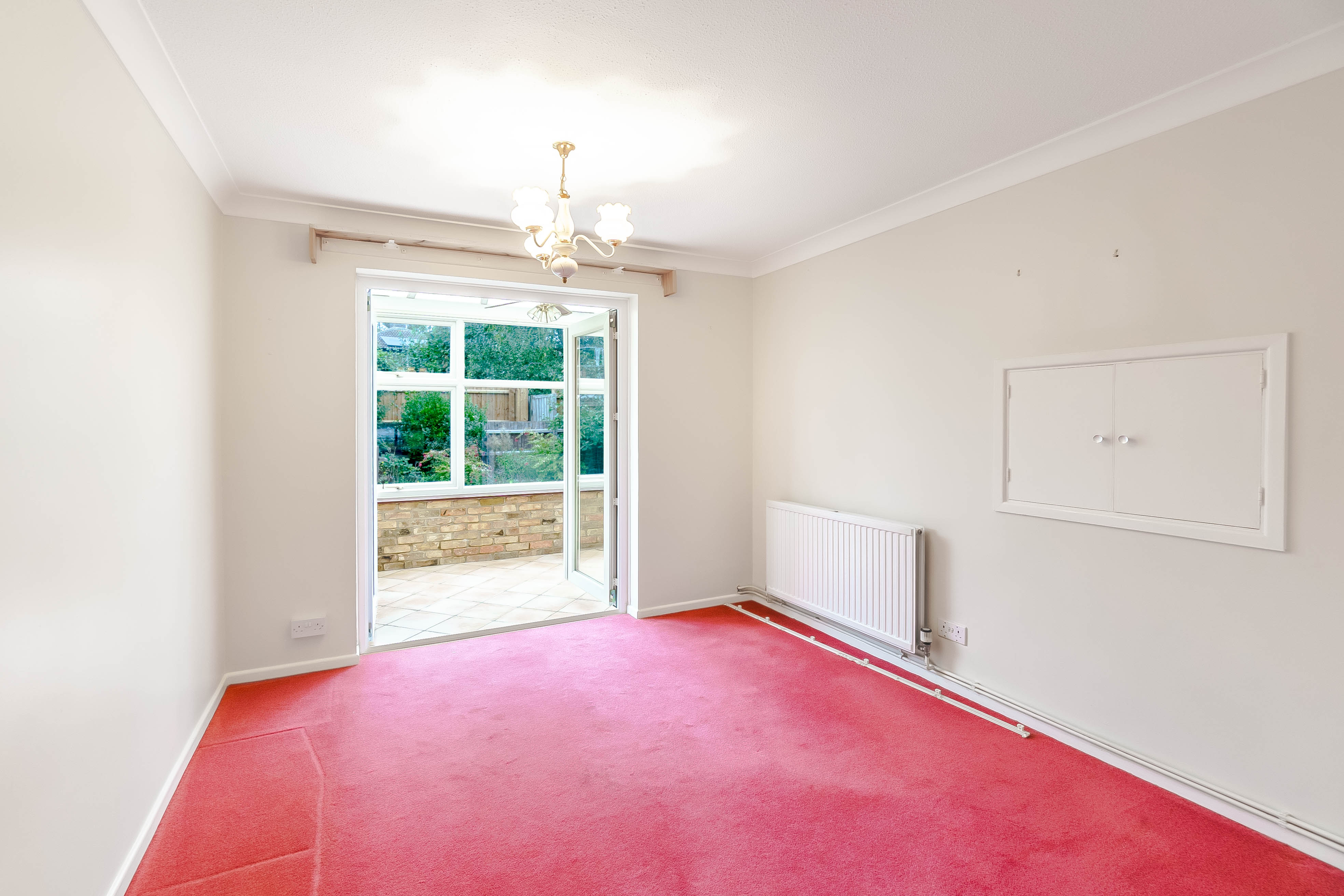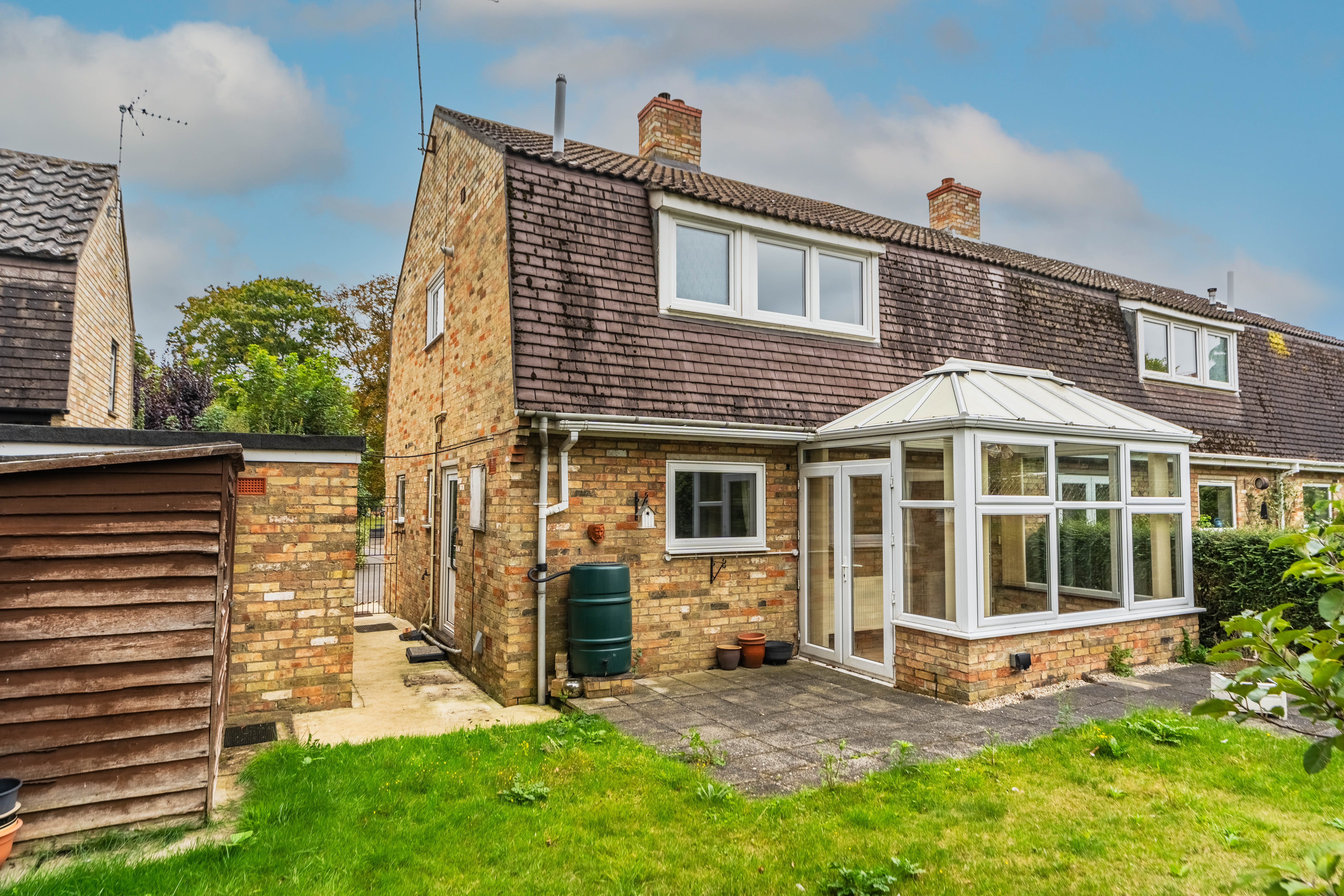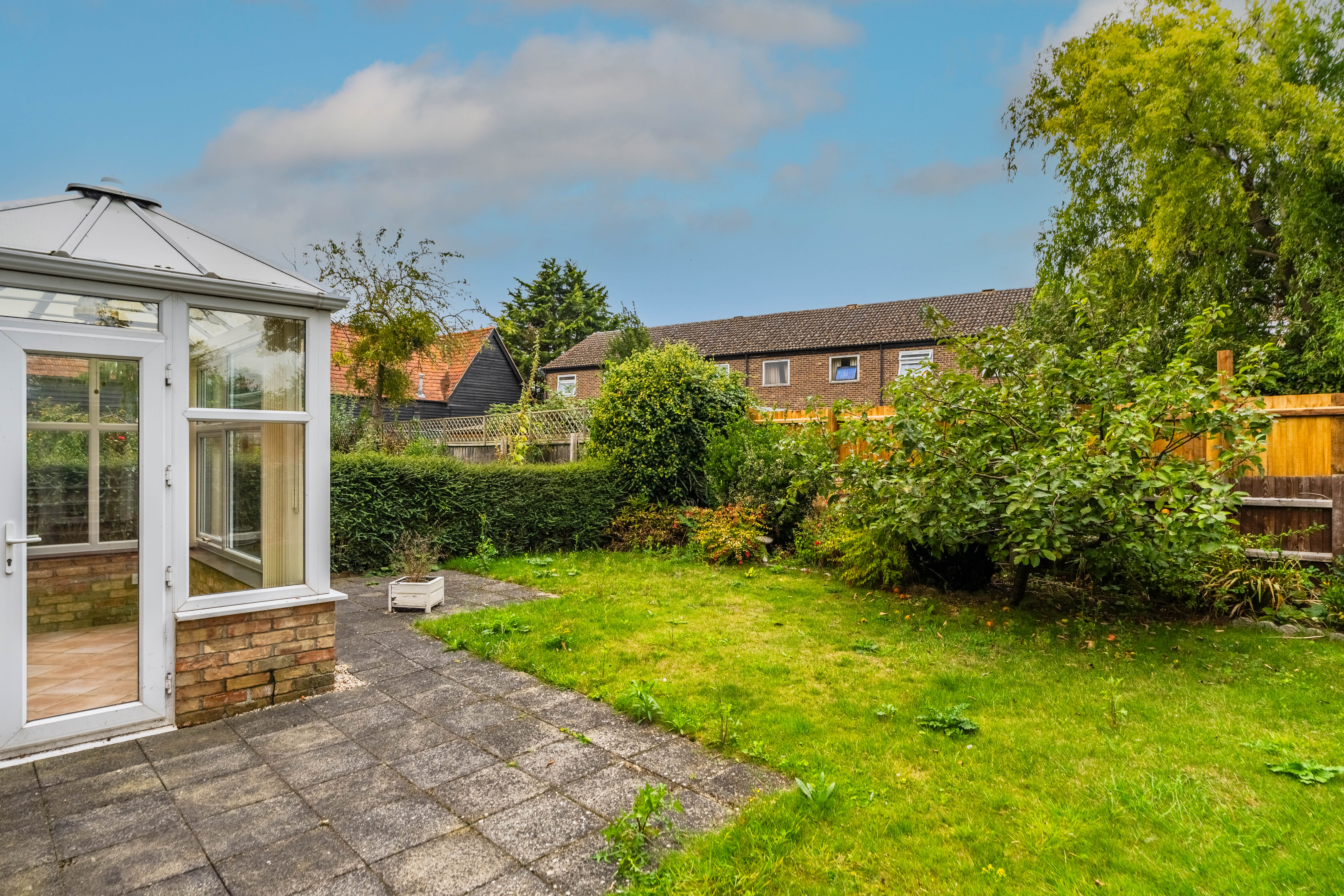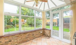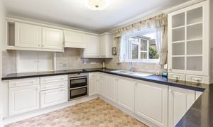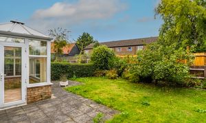 The entrance hall has a cupboard and stairs rising to the first floor. The spacious sitting room enjoys views to the front of the house and village green beyond. The separate dining room is alongside the kitchen, offering scope to be knocked through to create an open-plan kitchen/dining room. The conservatory leads from the dining room and is brick and double glazed, providing a third reception space and enjoying views into the private garden. The kitchen comprises a comprehensive range of wall and base units with an integrated double oven, fridge/freezer space, and plumbing for the washing machine.