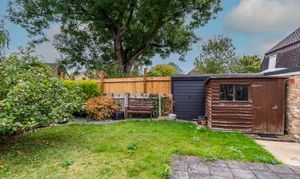 Situated within a small and attractive courtyard, previously the gardens of a former public house and just located off the green. The cul de sac of just 7 properties, with an established garden to the front, and a driveway that provides off-road parking for one vehicle, leads to the single brick-built garage with an over door and power connected. The gated path leads to the pretty and well-maintained, enclosed rear garden. Laid mainly to lawn with well stocked borders. Includes a paved patio area and timber shed.