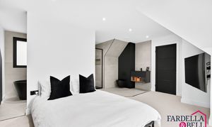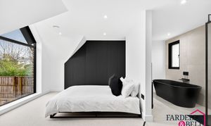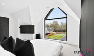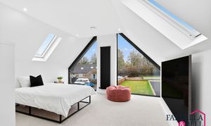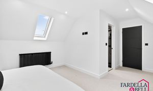 Natural light streams through expansive Velux‑style windows, instantly brightening this generous double bedroom. The calm atmosphere is complemented by sloping ceilings that lend architectural character and a sense of openness. Finished in a crisp, modern palette, the space offers flexibility for furnishings and storage solutions. Completing the picture of comfort, a private en‑suite shower room is seamlessly connected for everyday convenience.
