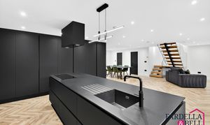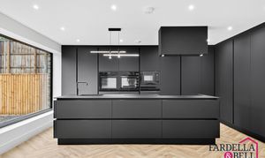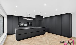 The kitchen is a real showstopper - is matte black finish really sets the tone for this well designed and stylish kitchen. With integrated appliances such as oven, microwave and fridge / freezer and lots of storage space this kitchen is both functional and unique. It has a sleek island with storage and a sink with mixer tap and overhead extraction point with lighting. This really does add to the over all theme of this open living space creating a perfect environment for family living or for hosting.