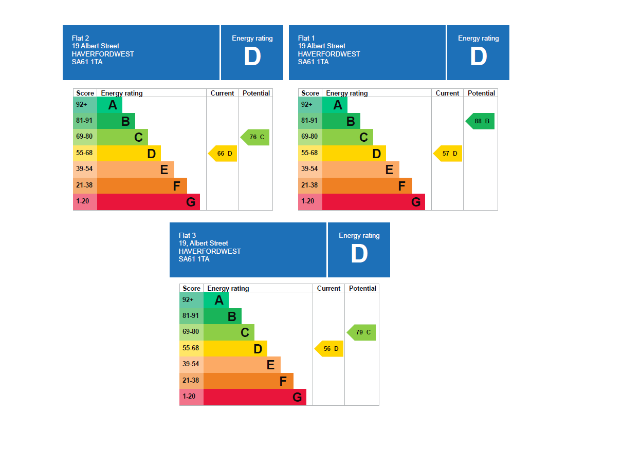 The majority of the windows and doors are uPVC double glazed and each flat benefits from gas fired central heating, electric and water. LOCAL AUTHORITY: Pembrokeshire County Council, County Hall, Haverfordwest SA61 1TP. EPC RATING: Flat 1 - 57D 88B Flat 2 - 66D 76C Flat 3 - 56D 79C Freehold and sold subject to existing ongoing agreements.