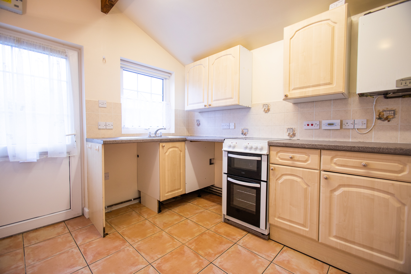 Double glazed window to side and rear aspects, base and wall units, space for washing machine, sink, boiler.