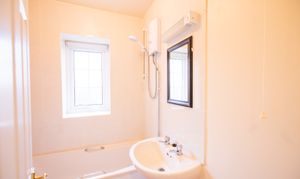 No natural light, low level W/C, wash hand basin, shower cubicle, extractor fan, tiled floor.