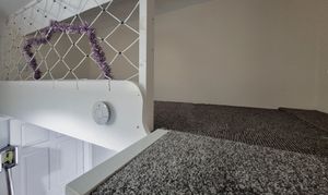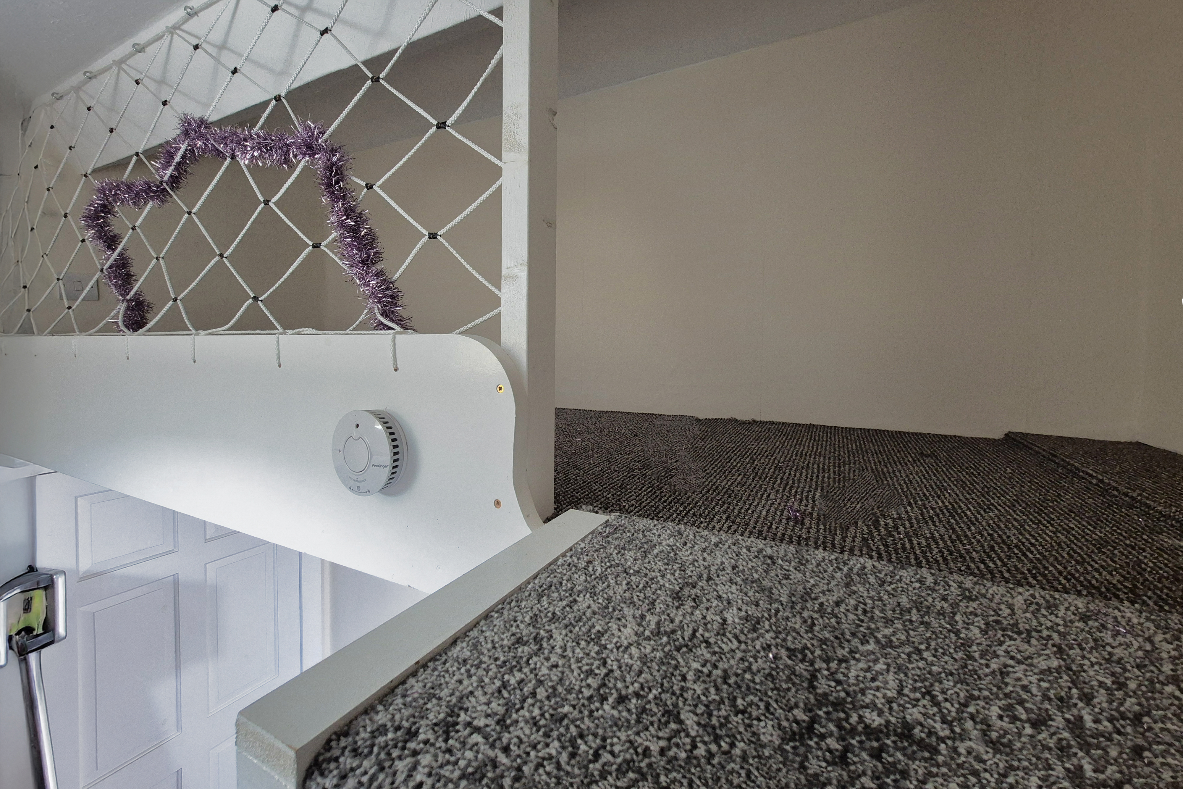 Side facing upvc window, fixed stairs to over head chill out or storage area and radiator.