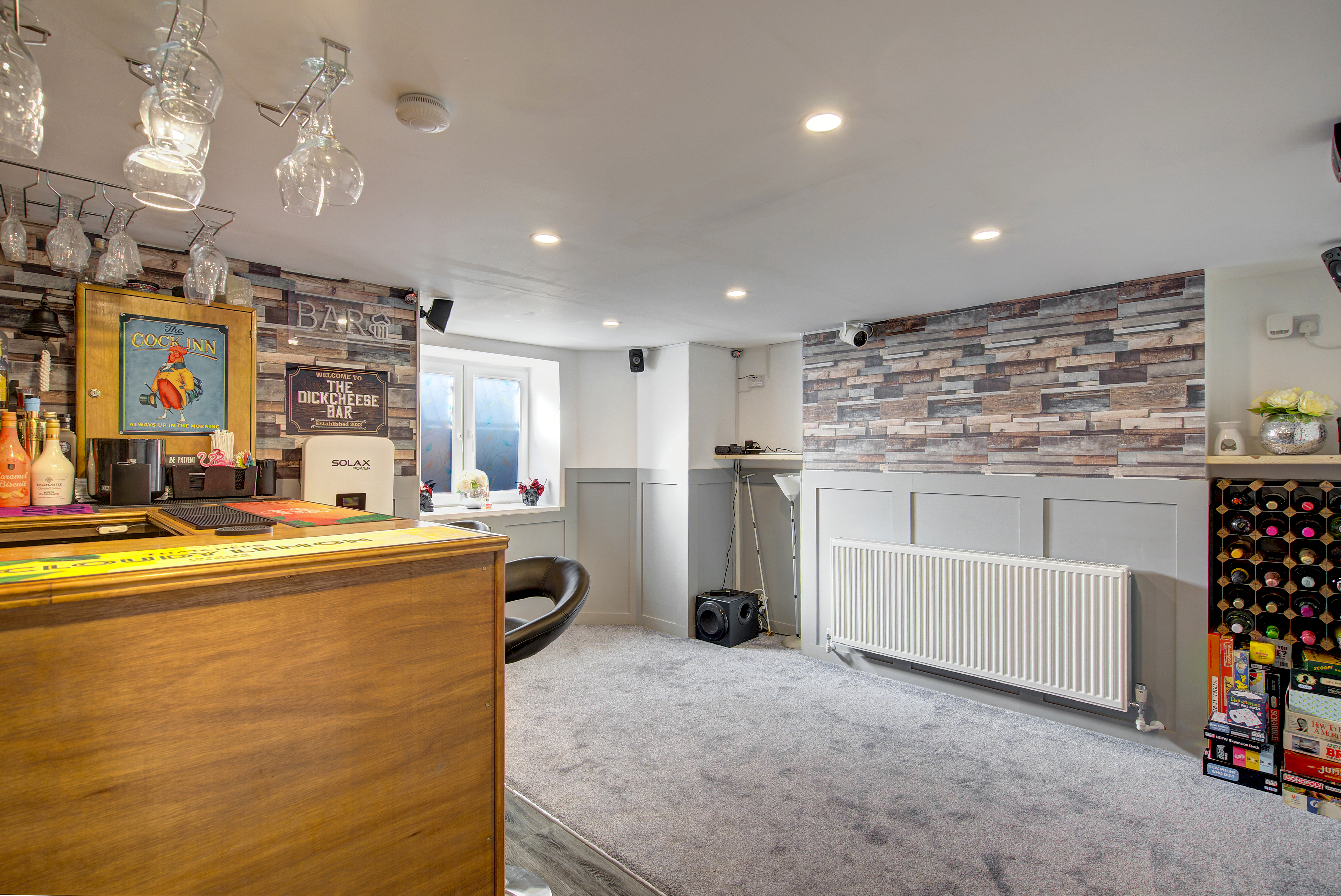 Front facing upvc bay window, fitted bar area, wood panelling to walls, inset to ceiling spot lights and radiator. Cuoboard storing, Solar Panel Management System, Storage Battery to help retain extra power, dual pump management system and meters.