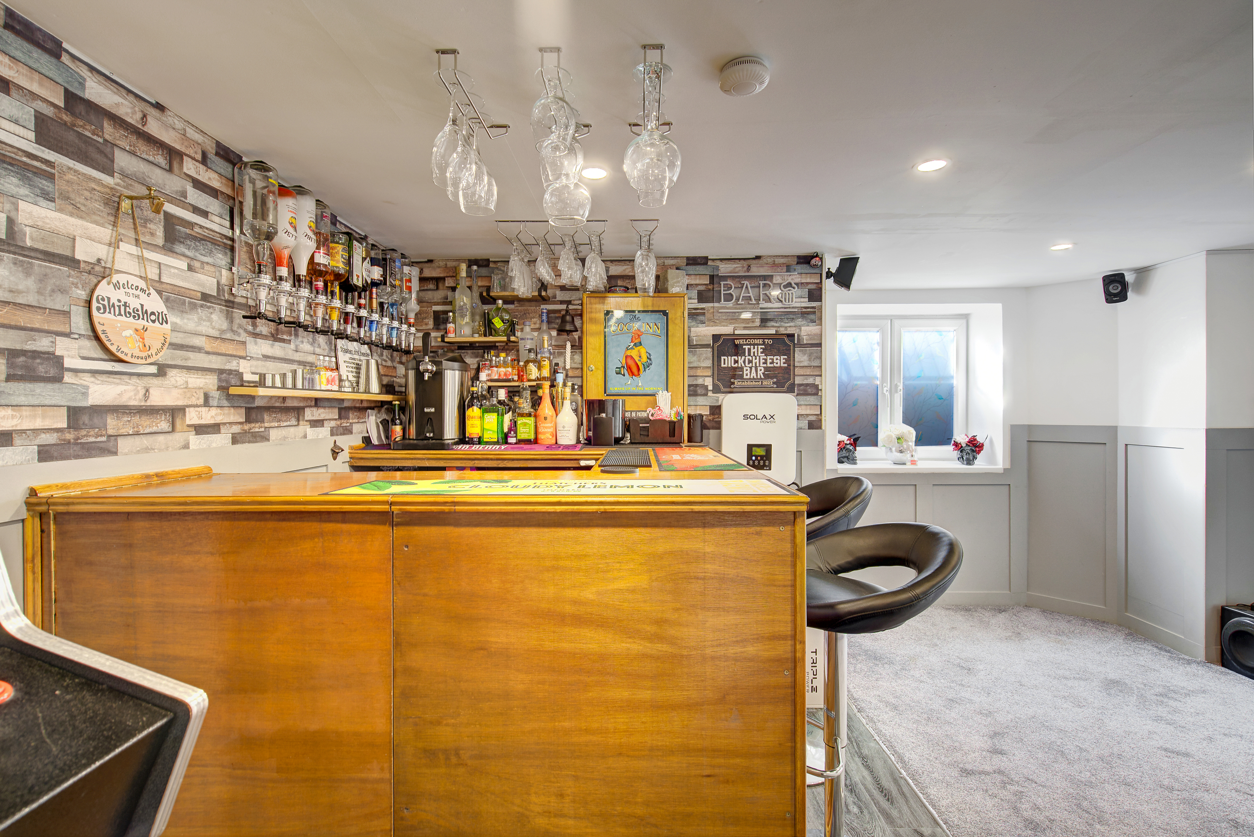 Venture below and discover the cellar, a vibrant bar and lounge area, perfect for long evenings with friends, or a private retreat for overnight guests. Upstairs, five double bedrooms spread out generously, each one a canvas for rest, work or play, with the bay-windowed principal bedroom basking in morning light.