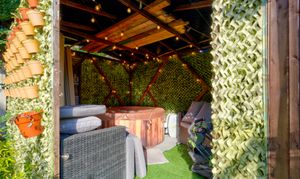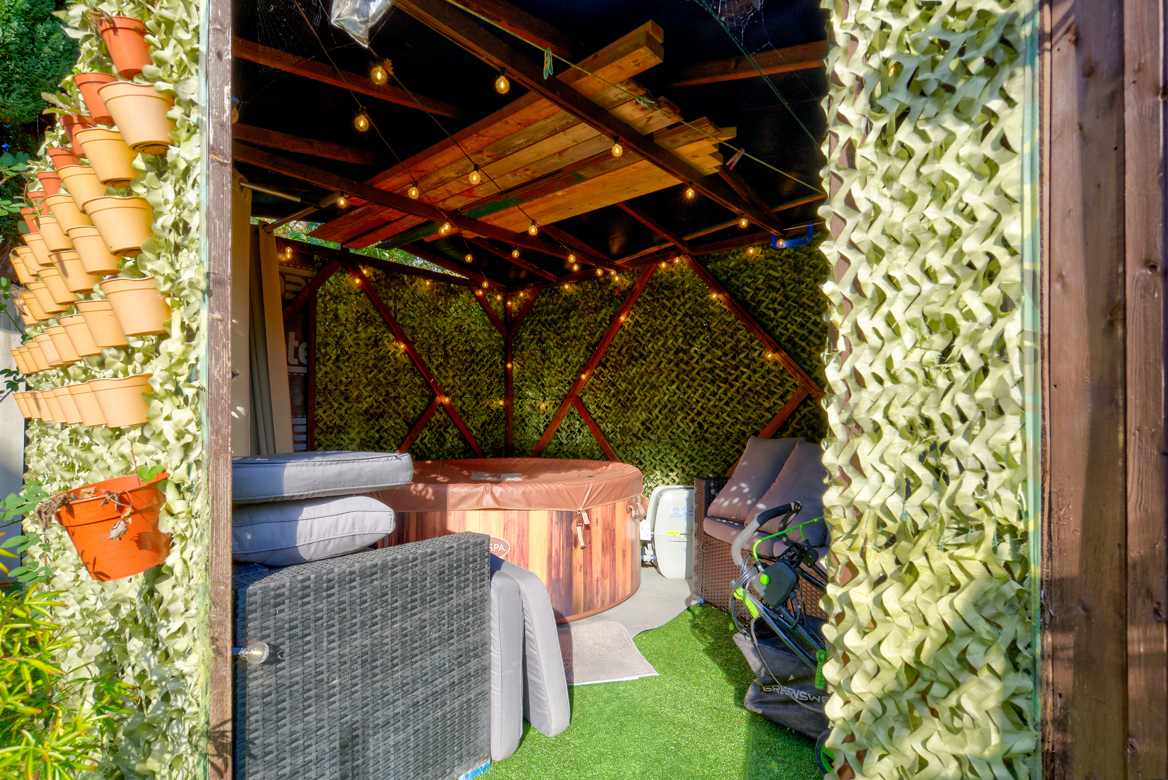 - Relaxing covered hot tub area and artificial lawn, offering year-round enjoyment