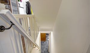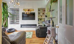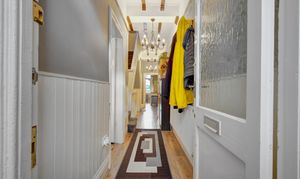 Step through the vestibule and into a hallway that whispers history, where high ceilings and wooden beams set the tone. The lounge, with its glowing media wall and crackling fire, invites you to sink in, unwind and feel at home. Beyond, the kitchen and dining spaces hum with possibility, family breakfasts, Sunday roasts, laughter spilling from one room to the next.