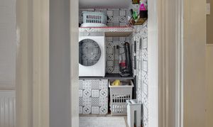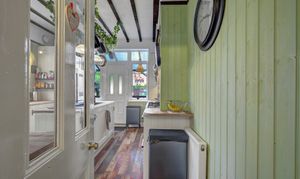 Side facing upvc door, plumbed for washer and laminate flooring.