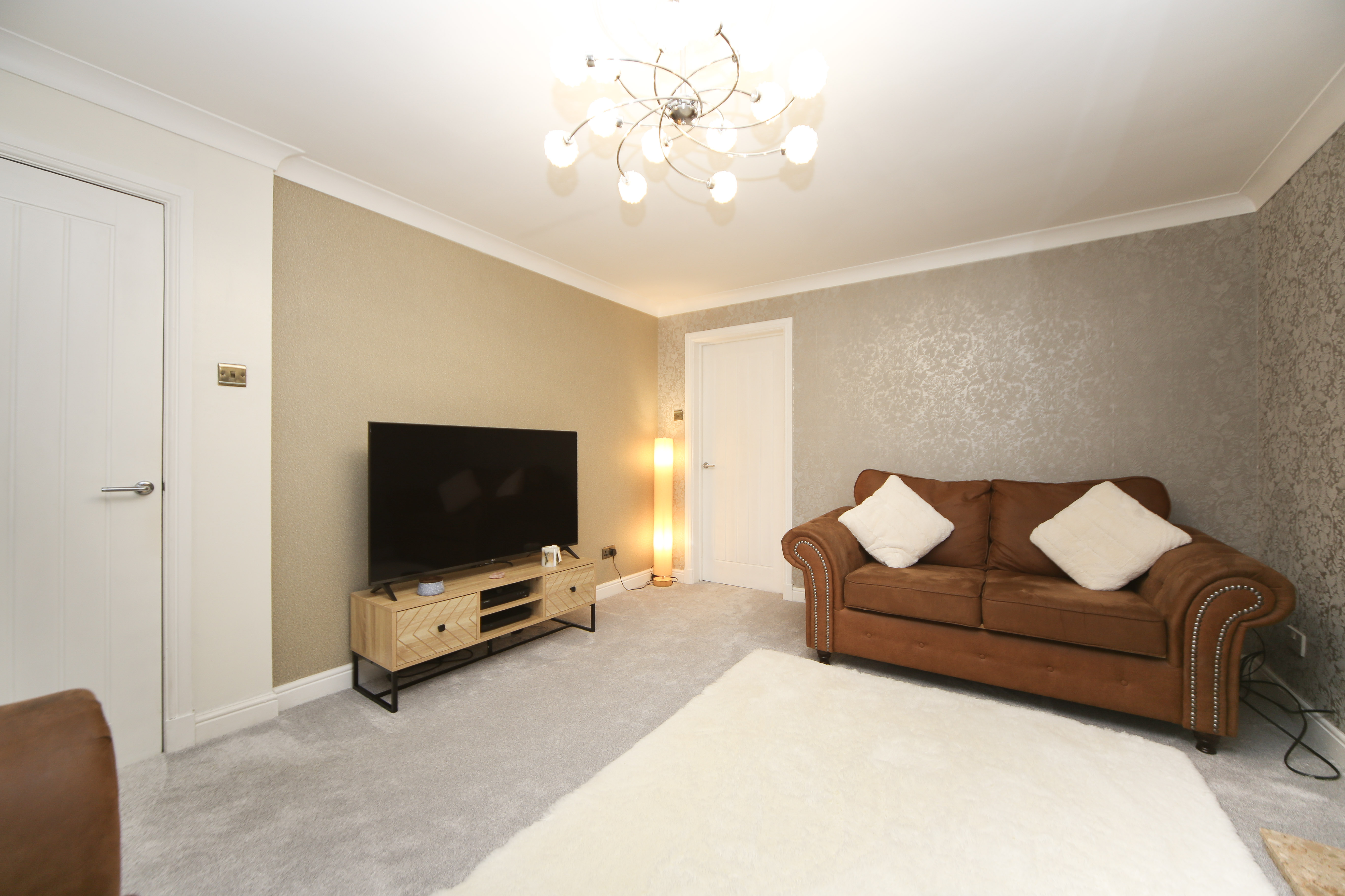 Internally, the property is finished to a high standard throughout and briefly comprises: a welcoming entrance hallway, convenient downstairs W.C., a spacious and well-lit lounge, and a contemporary fitted kitchen/diner ideal for modern family living. Completing the ground floor is a bright and airy orangery adding to the open plan aspect, perfectly positioned to overlook the low-maintenance rear garden, finished with elegant Indian stone paving. To the rear are open fields offering privacy and seclusion meaning the property is not overlooked.