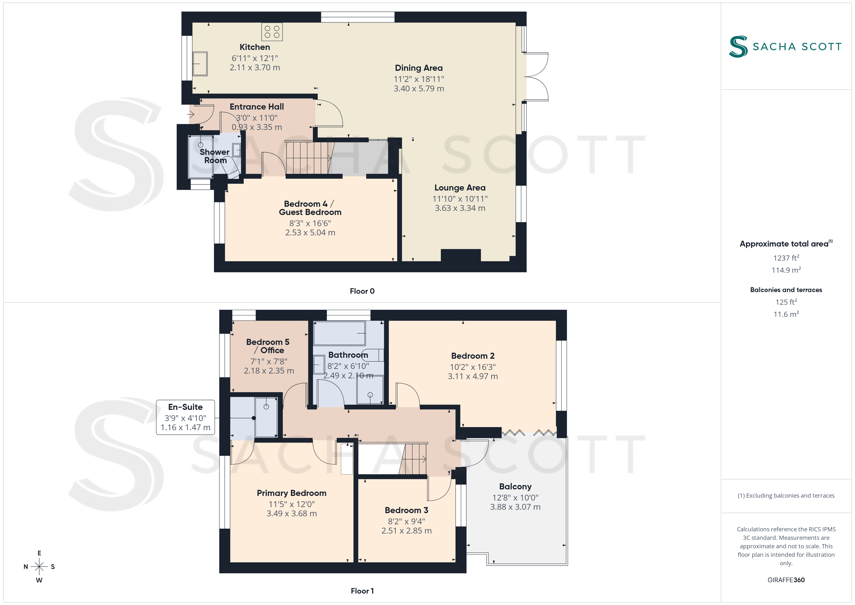 Serving as both a ground floor guest WC and accessible bathroom for bedroom 4 on the ground floor, this generous shower room offers a sink, WC, heated towel rail and large shower enclosure.