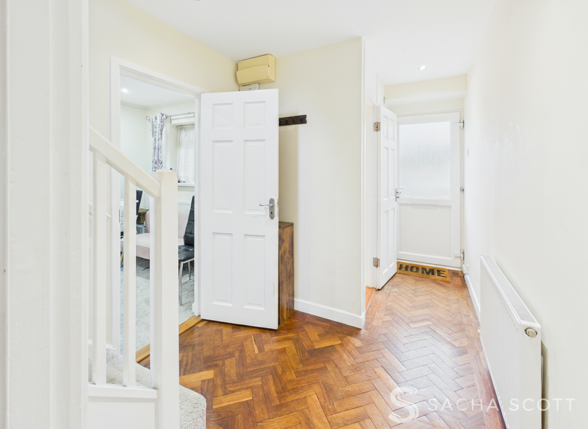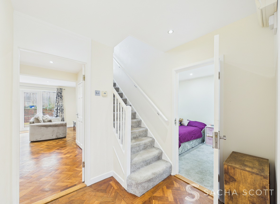 Benefiting from warm parquet flooring and neutral decor, the entrance hall to this fabulous family home sets the tone for a generous family home that is bright, flexible and in good order throughout.