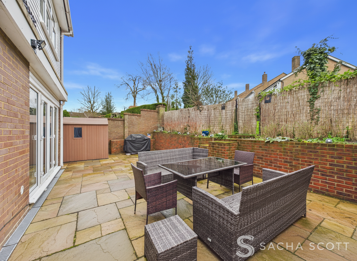 The low maintenance south facing sun lovers garden measures approximately 15ft x 30ft, opening up into a large lawned communal area perfect for the children and communal barbecues and an evening drink with neighbours and friends! The garden area is paved with a side gate leading to the front of the property, an external light, tap, a shed and retained planters.