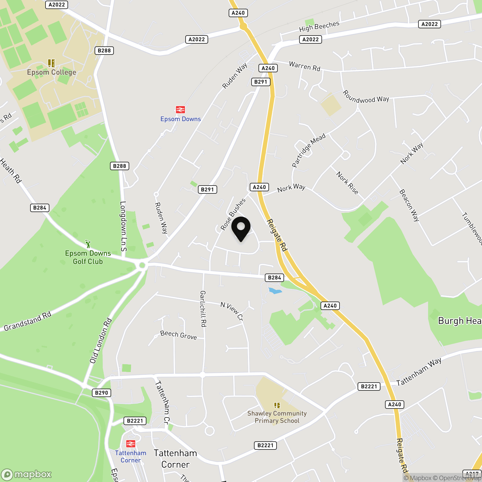 Nearby stations include Epsom Downs (approx. 0.8 miles) and Tattenham Corner (approx. 1.2 miles), with Epsom mainline station (approx. 2.1 miles) offering frequent services into London Waterloo, London Victoria and London Bridge.