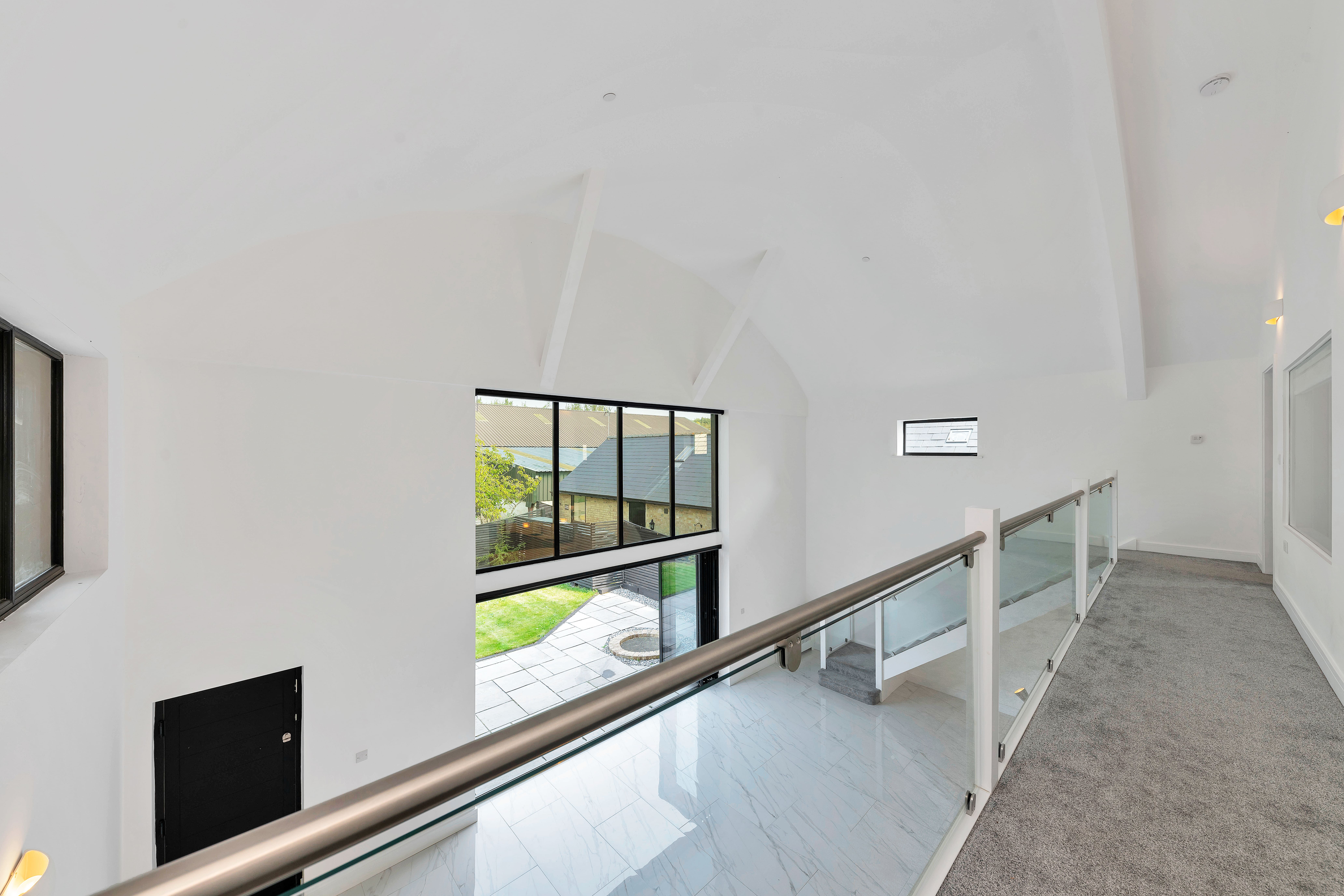 This stunning contemporary barn conversion enjoys a unique and attractive approach, with the front door set back inside a wide alcove. Upon stepping inside, the entrance hallway is bright and beautifully decorated, alluding to the high standard seen throughout this lovely home. It benefits from tiled flooring, integrated storage, inset lighting and access through to the ground floor living space.