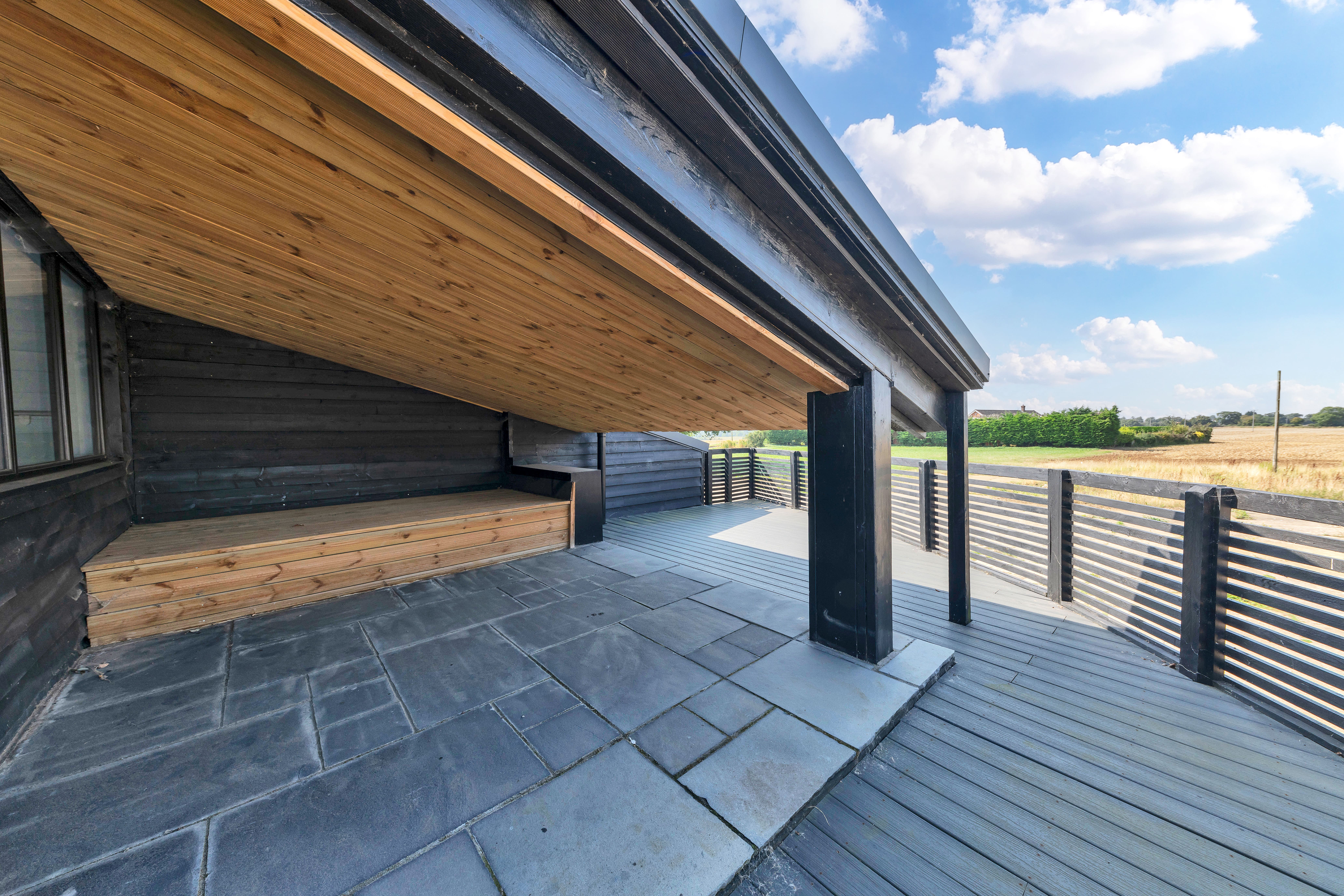 Outside, to the rear, the garden is a very good size, fully enclosed by fencing and offering a lovely spot to sit and relax in the sunshine. It is laid mainly to lawn, with a paved patio area providing ample space for garden furniture, enjoying meals al fresco and entertaining guests. There are also stairs up to a beautiful first-floor open and undercover terrace, with stunning countryside views and plenty of space for furniture.